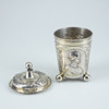 Embossed and chiselled decor with three profile pictures, text: Theodosius- Bardanes-Alexander Sever. Diameter 10,5 cm, height 19 cm, weight circa 298 g.