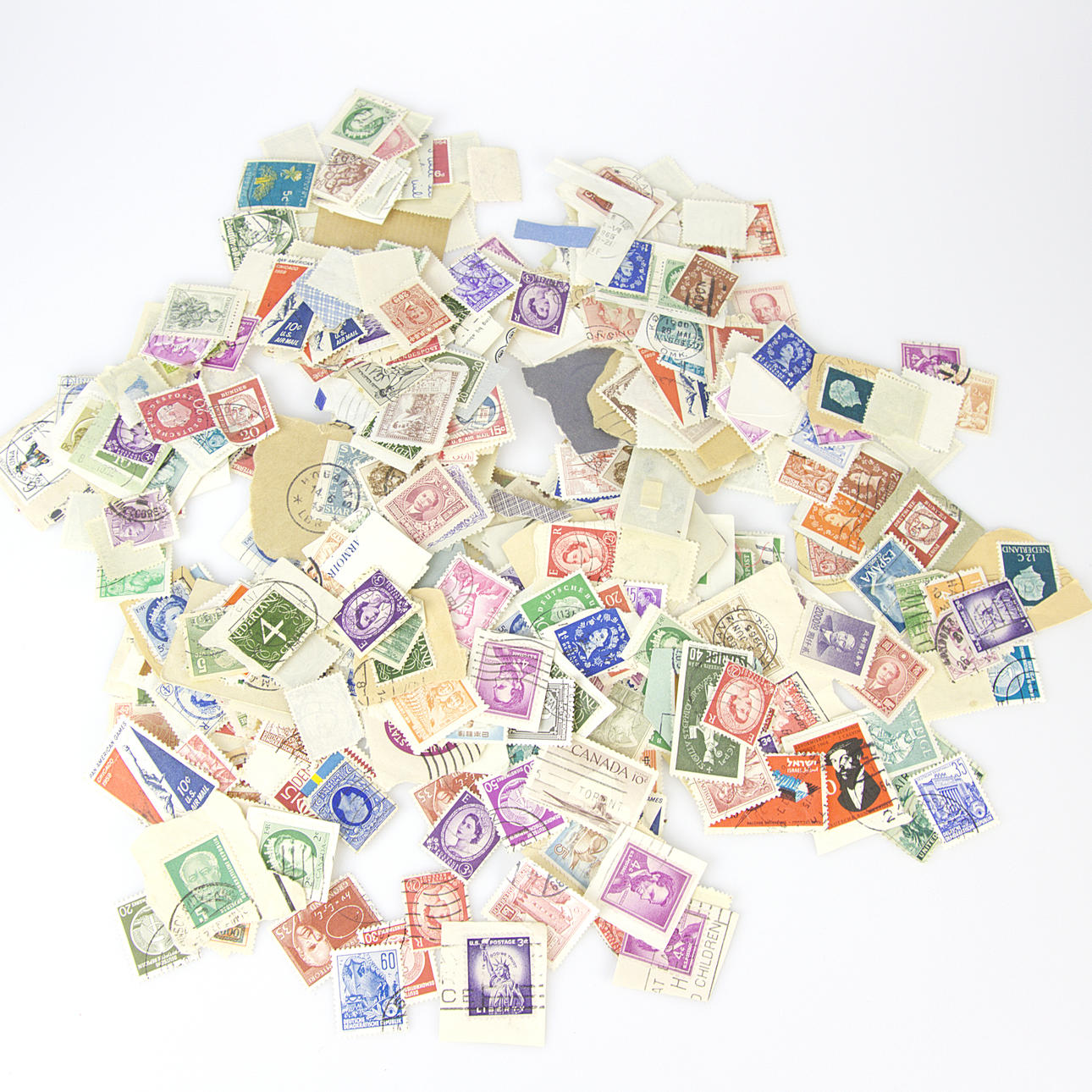 Unsorted stamped stamps.
