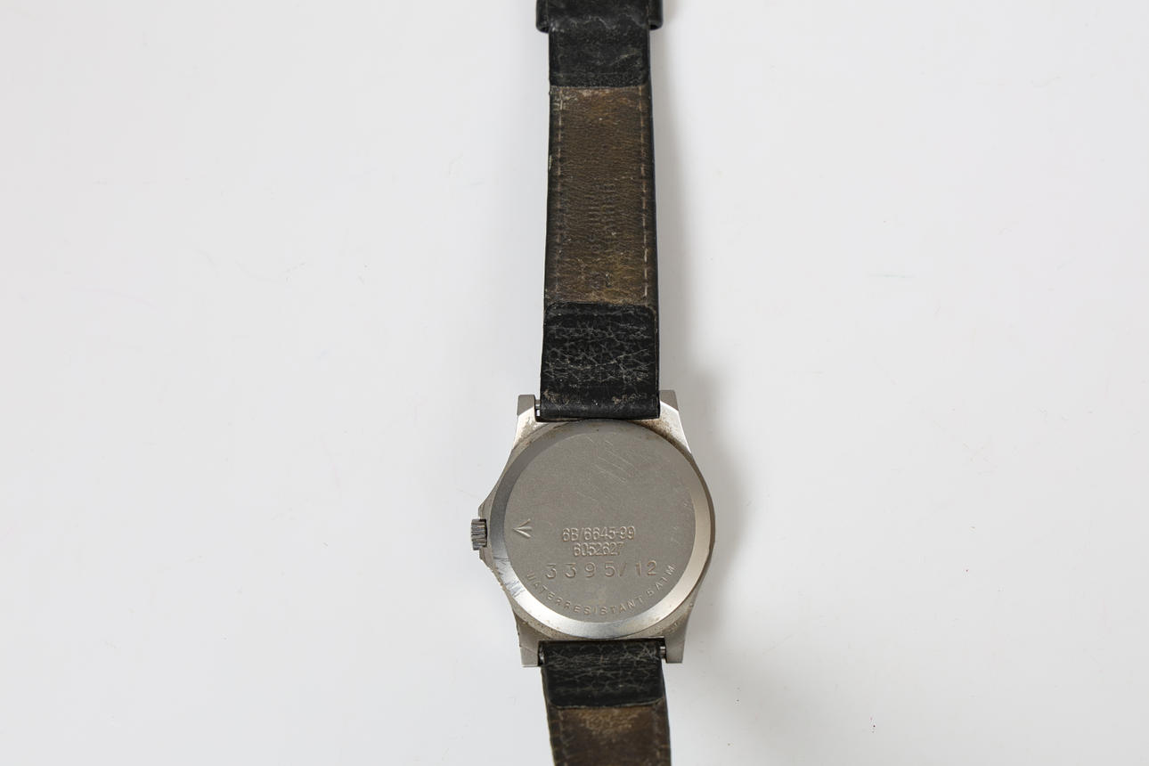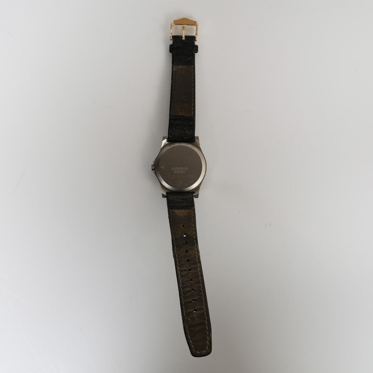 Model no. 6B/6645-99 6052627 3395/12, the signed silver dial with Arabic markers, outer minutes track and date aperture at the three o'clock position, quartz movement, the case 35mm.