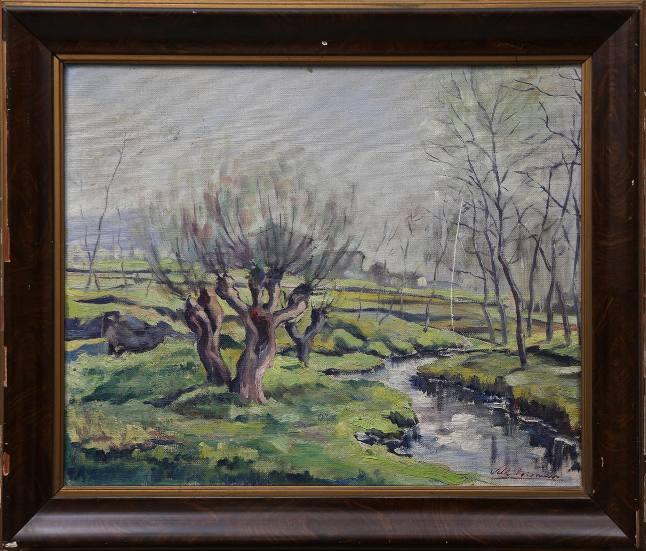 Scratches and defects on the paint layer. Wooden frame, with losses. Not examined outside the frame.