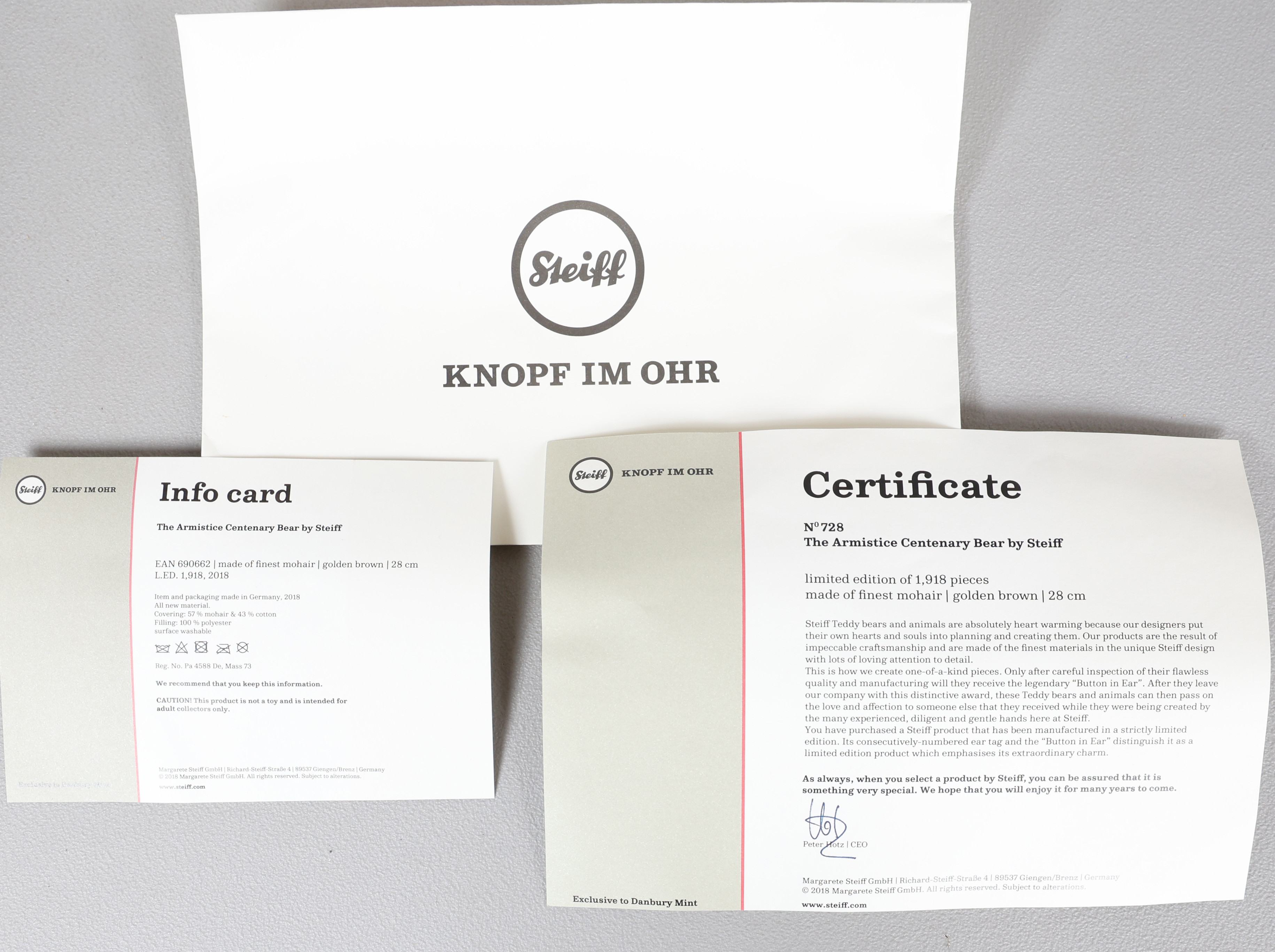 4175102. A STEIFF LIMITED EDITION ARMISTICE CENTENARY BEAR.