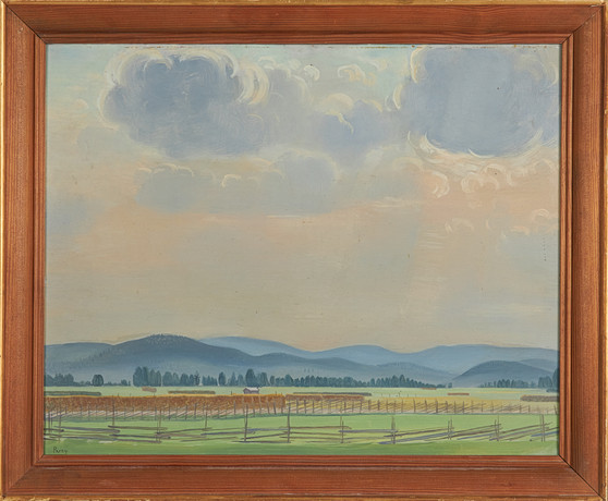 On verso- “Rättvik, Dalarne, from a height in the north, year 1849 af C*FH” (Possibly C or G), picture dimensions approx. 15,20, frame ca 22x26,5 cm.
