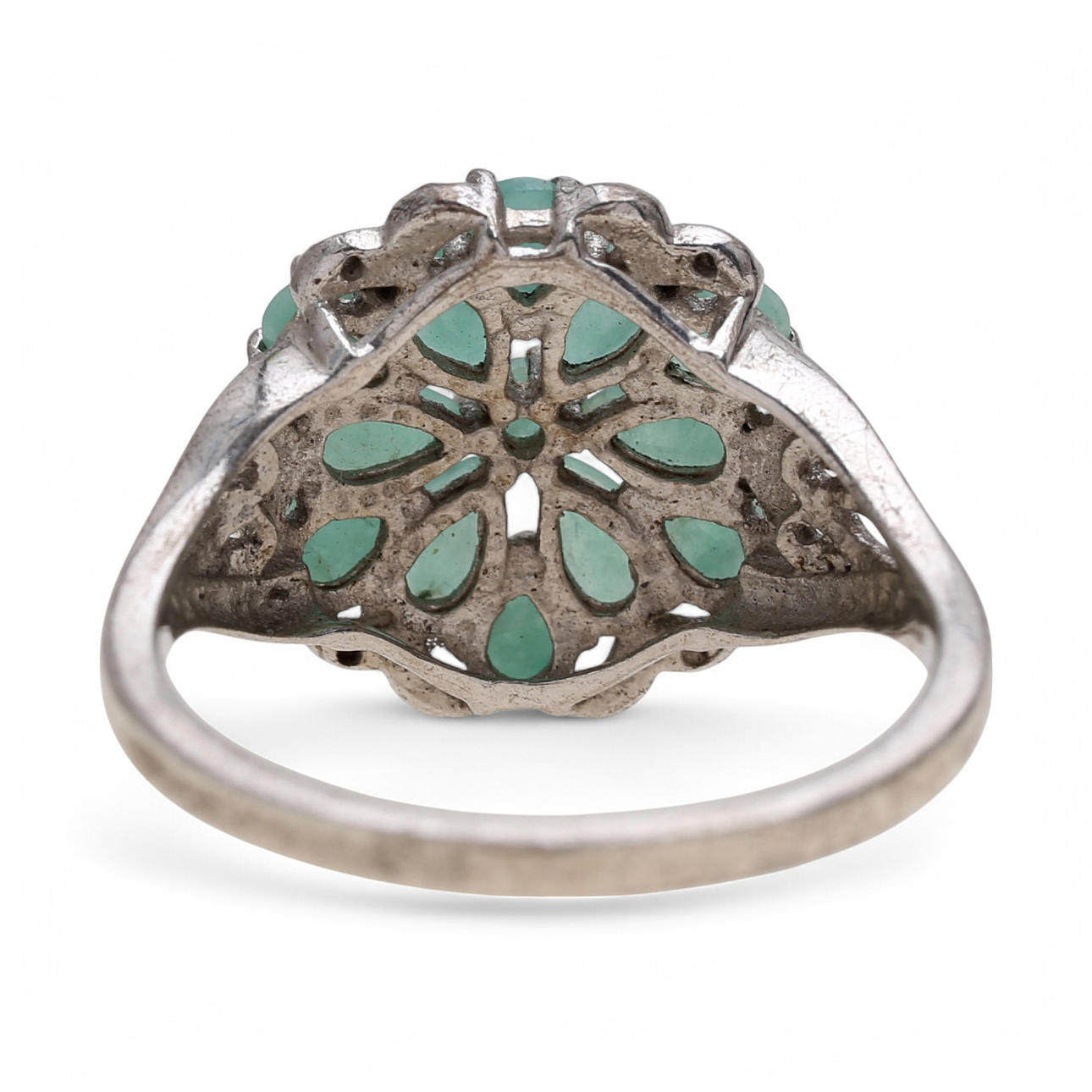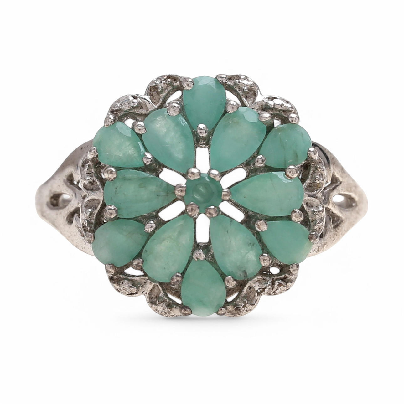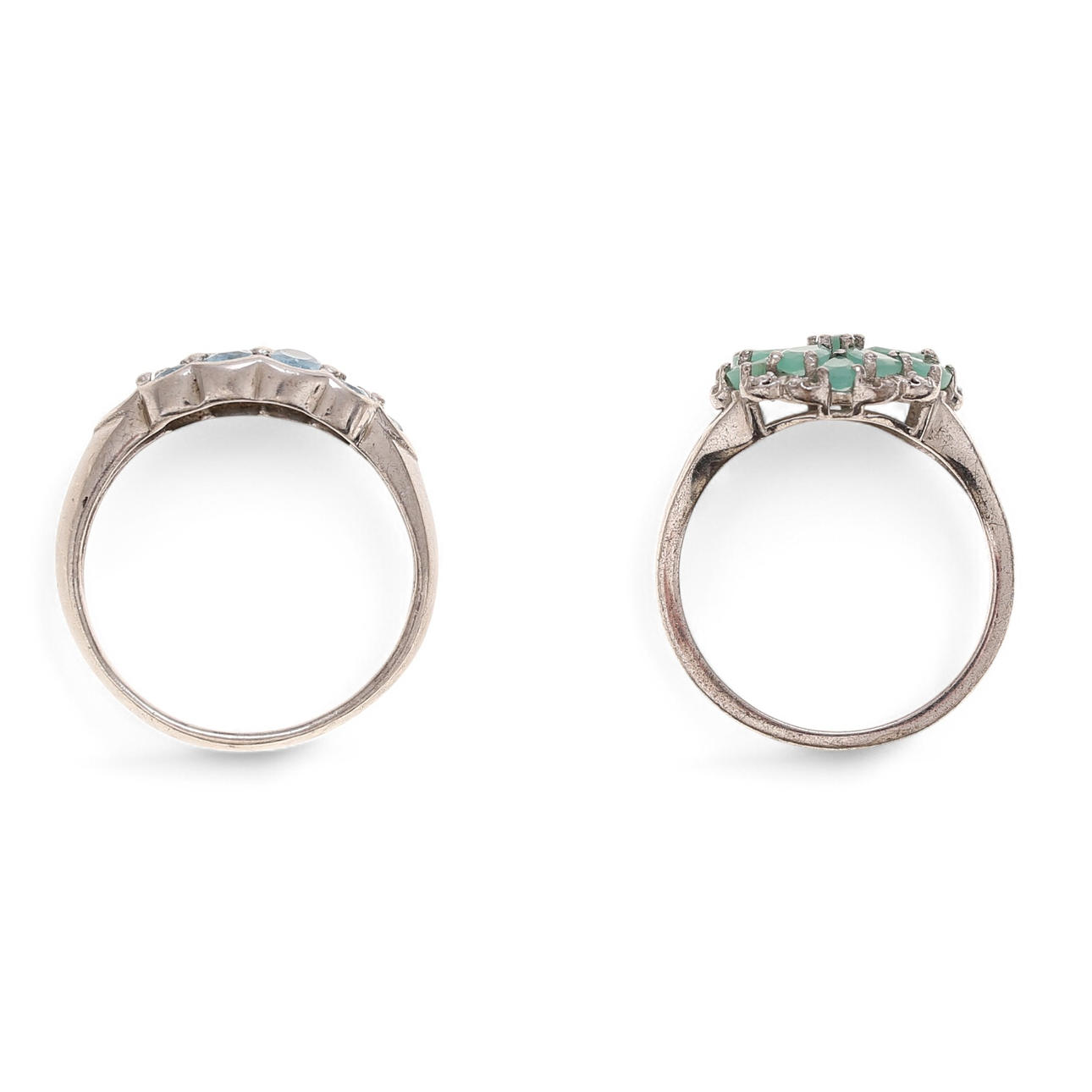 Silver, chrysoprases and aquamarine-like glasses. Size 25/65 and 22/62. 9.6 gr.