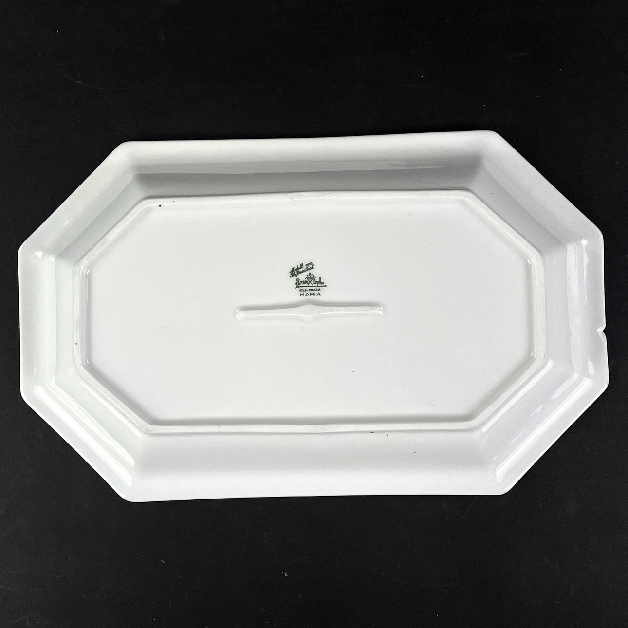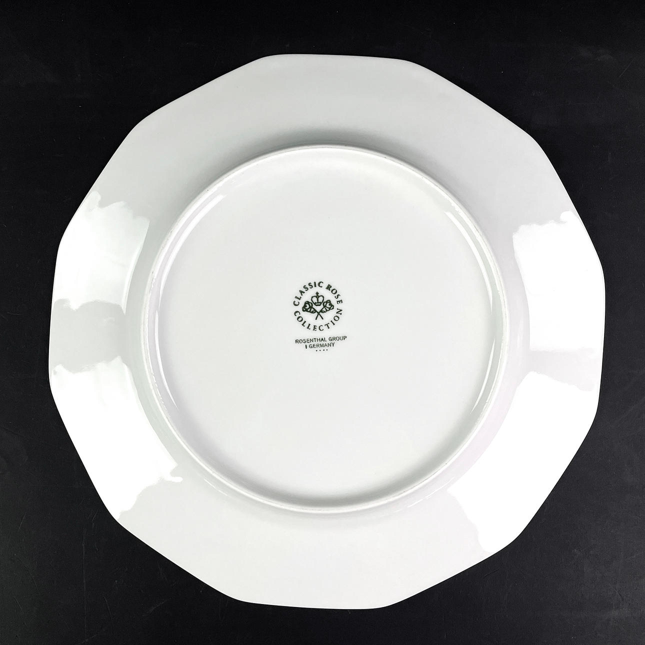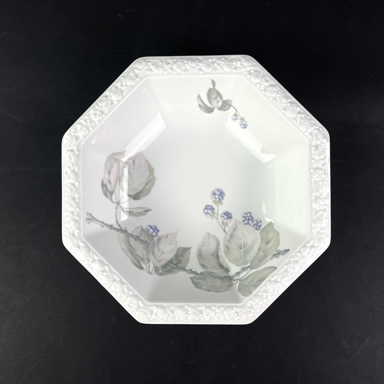 Normal wear and tear, minor cutlery scratches. Hair crack and mininag on a 22 cm plate. Bleached decor on a 20 cm plate. Serving dish 32,5 cm with notch.