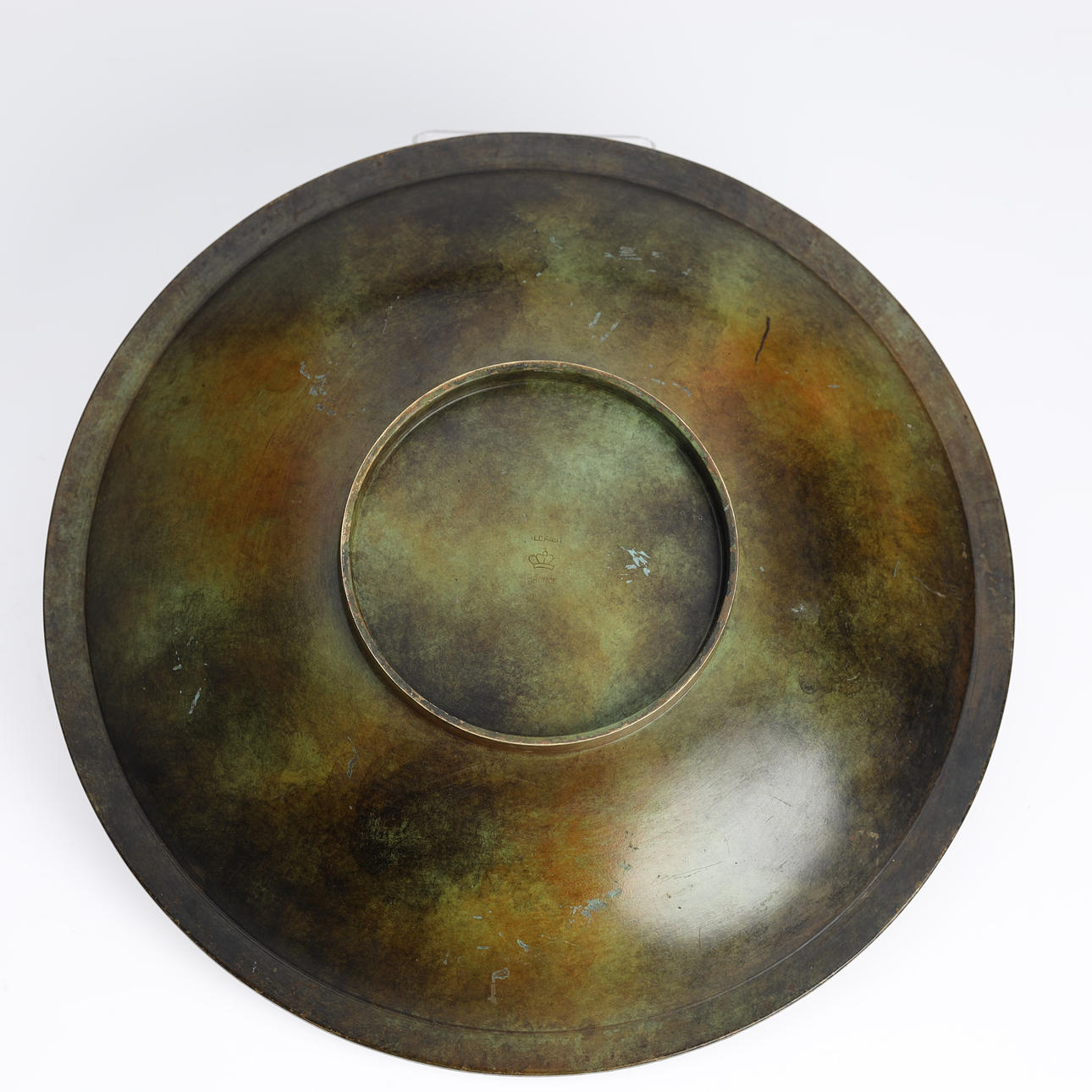 Bronze patina-treated platter. Bottom stamped. Art Deco period in Denmark 1930s.