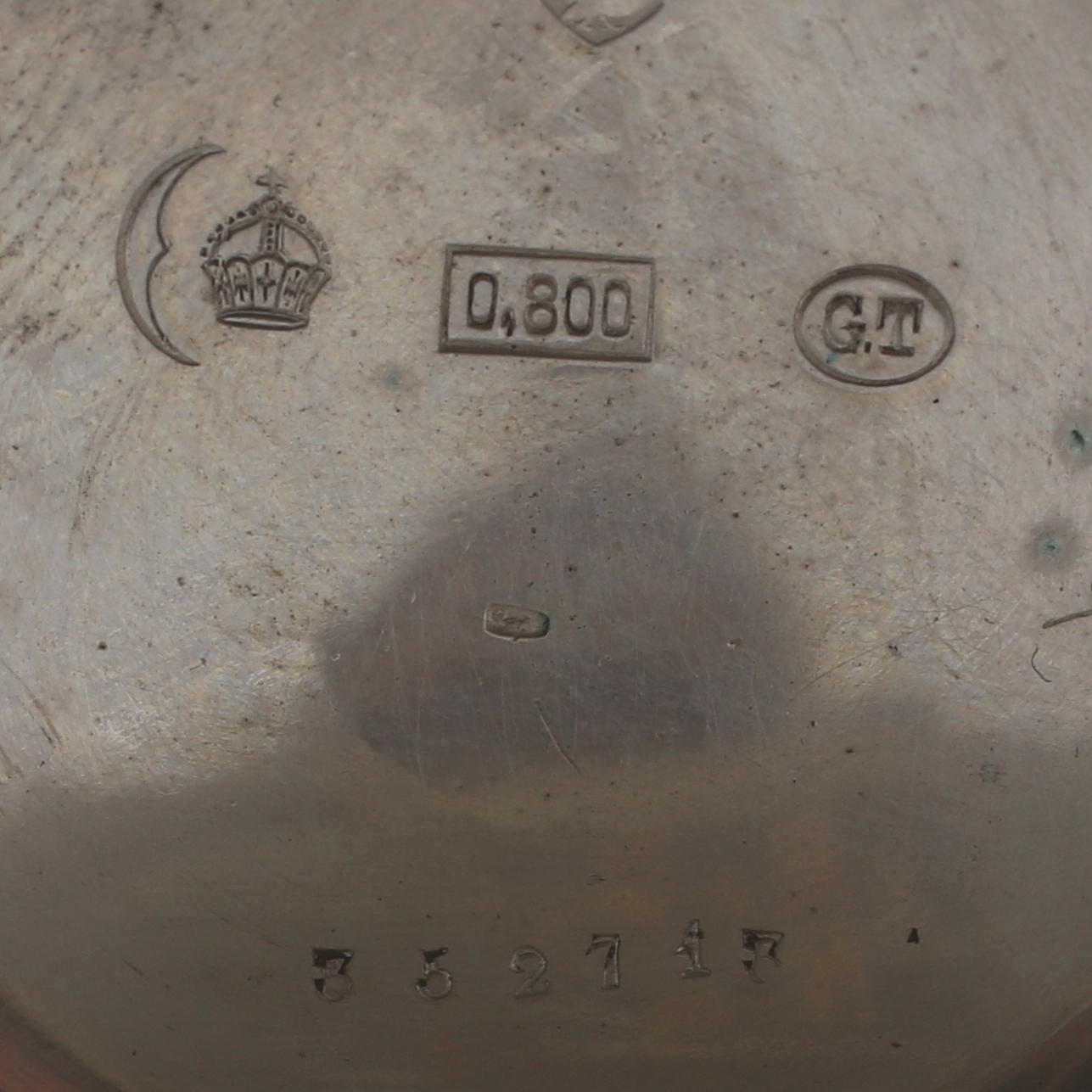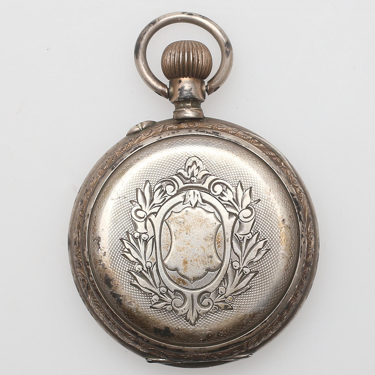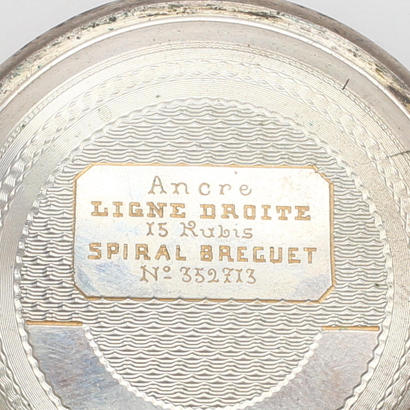 Boett av silver, stämplat. Märkt Ancre Ligne Droite 15 Rubis Sprial Breguet No. 352713. Diameter 5 cm.