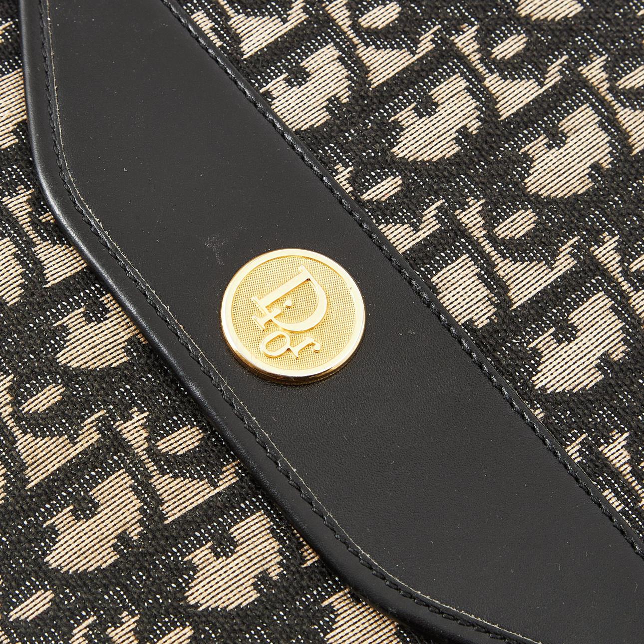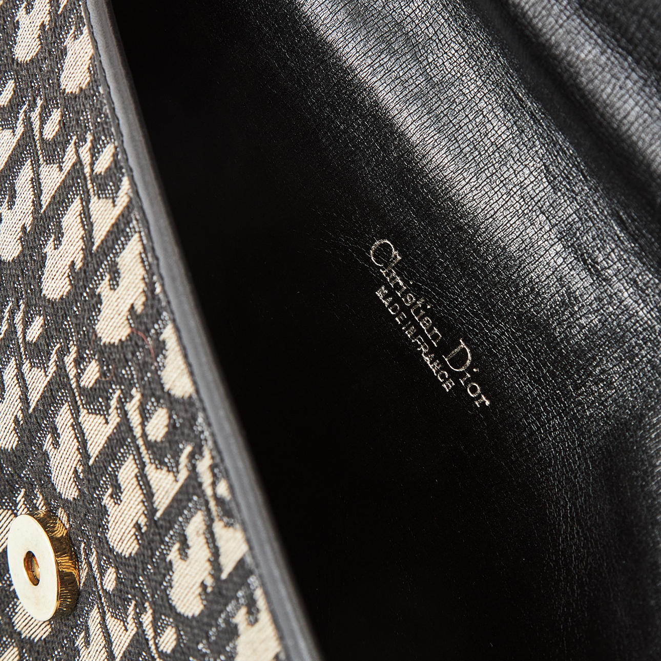 Monogram canvas, details and inside in black leather, button at front in yellow metal, marked “Christian Dior made in France”, dimensions approx. 29x19cm.