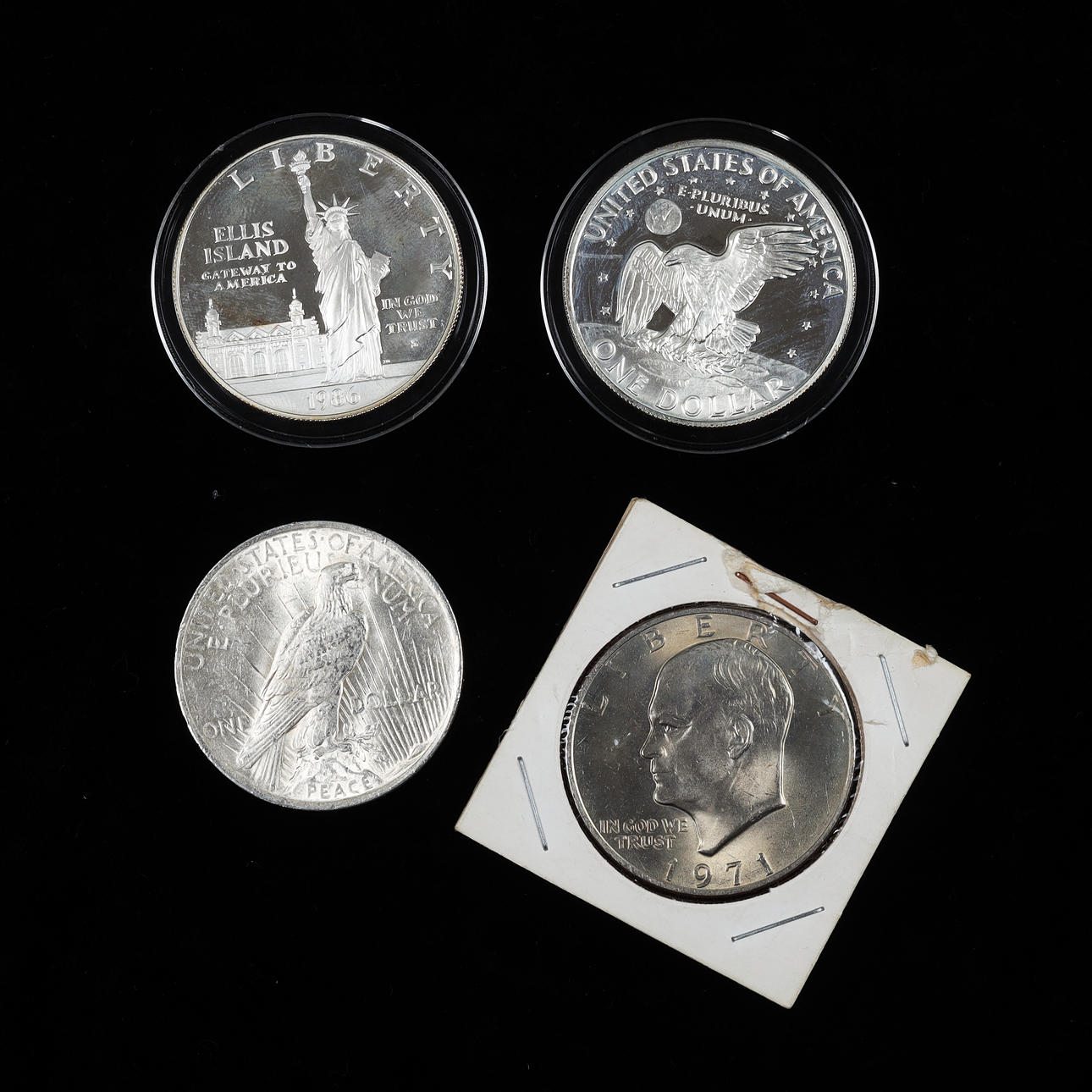 4 US dollar coins, 1922-1986.