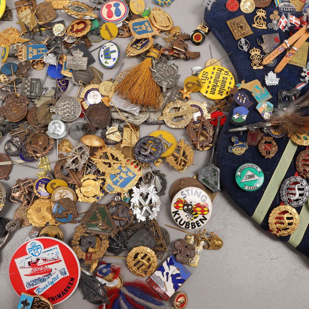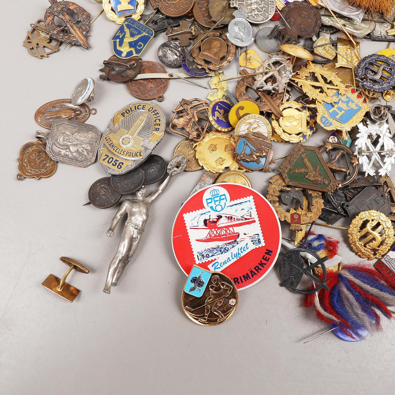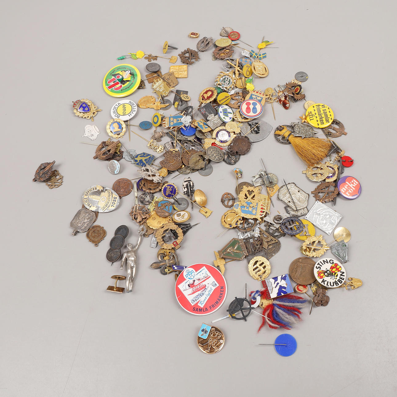 Mixed needle marks, pins and batches from the 20th century.