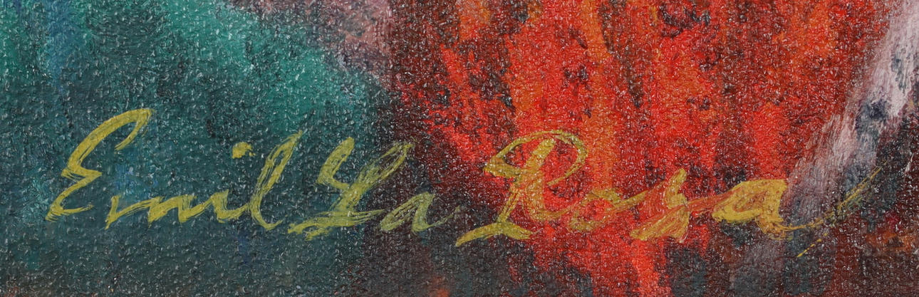 EMIL LA ROSA. Cockfighting, oil on panel, signed.