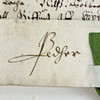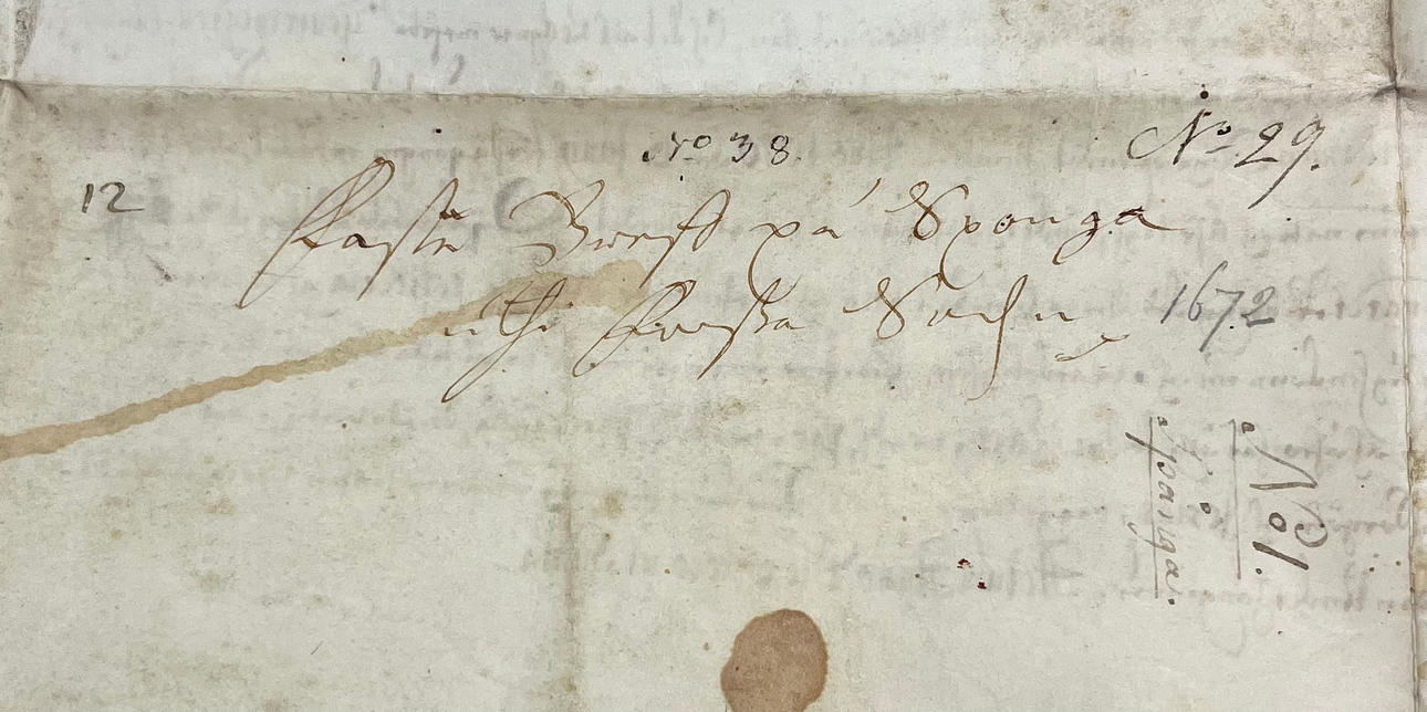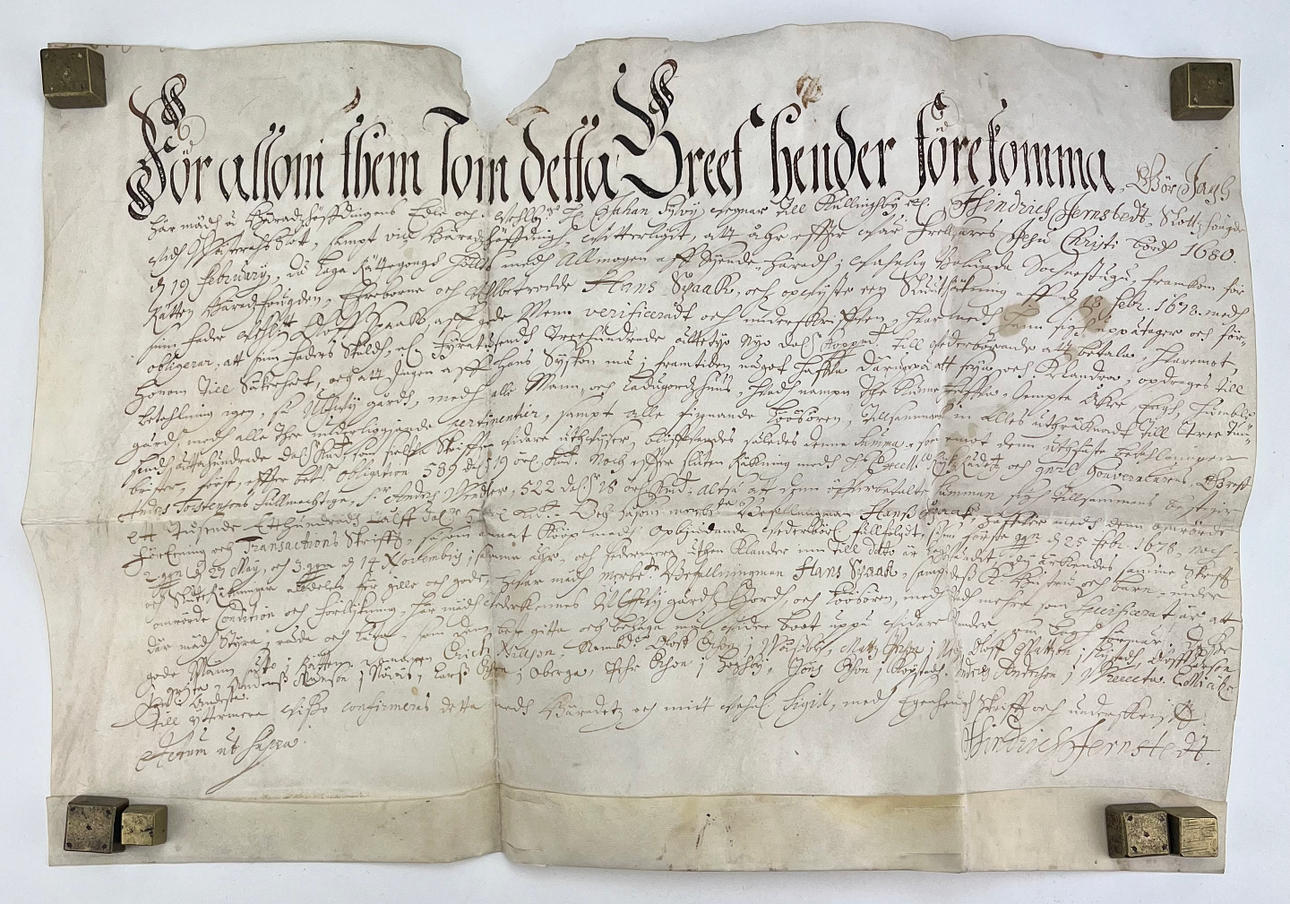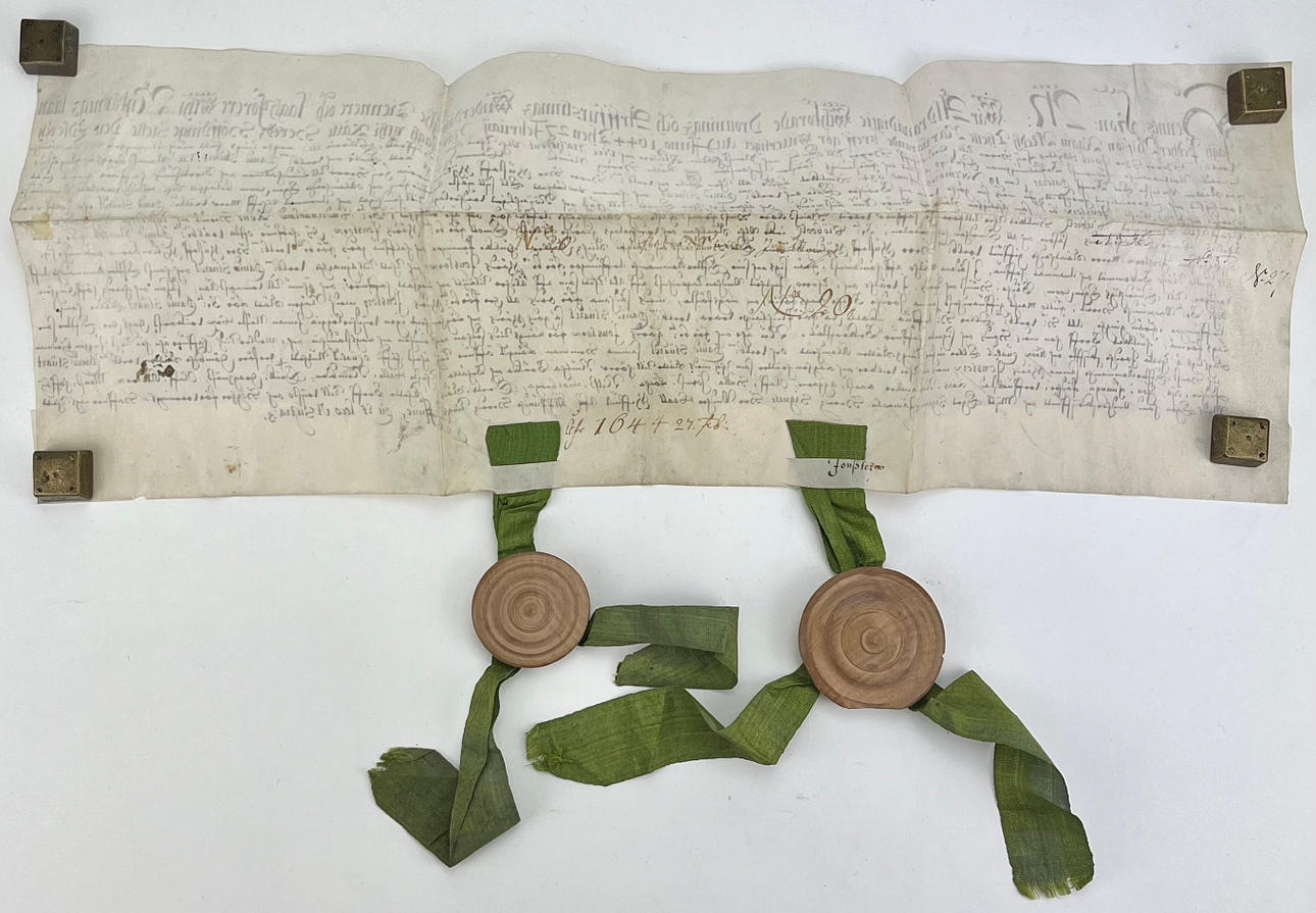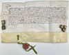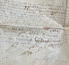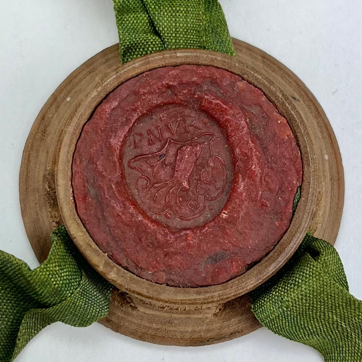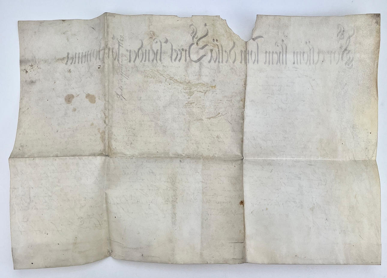 Folded. Use and age-related wear and damage. Lid missing to seal. Stains.