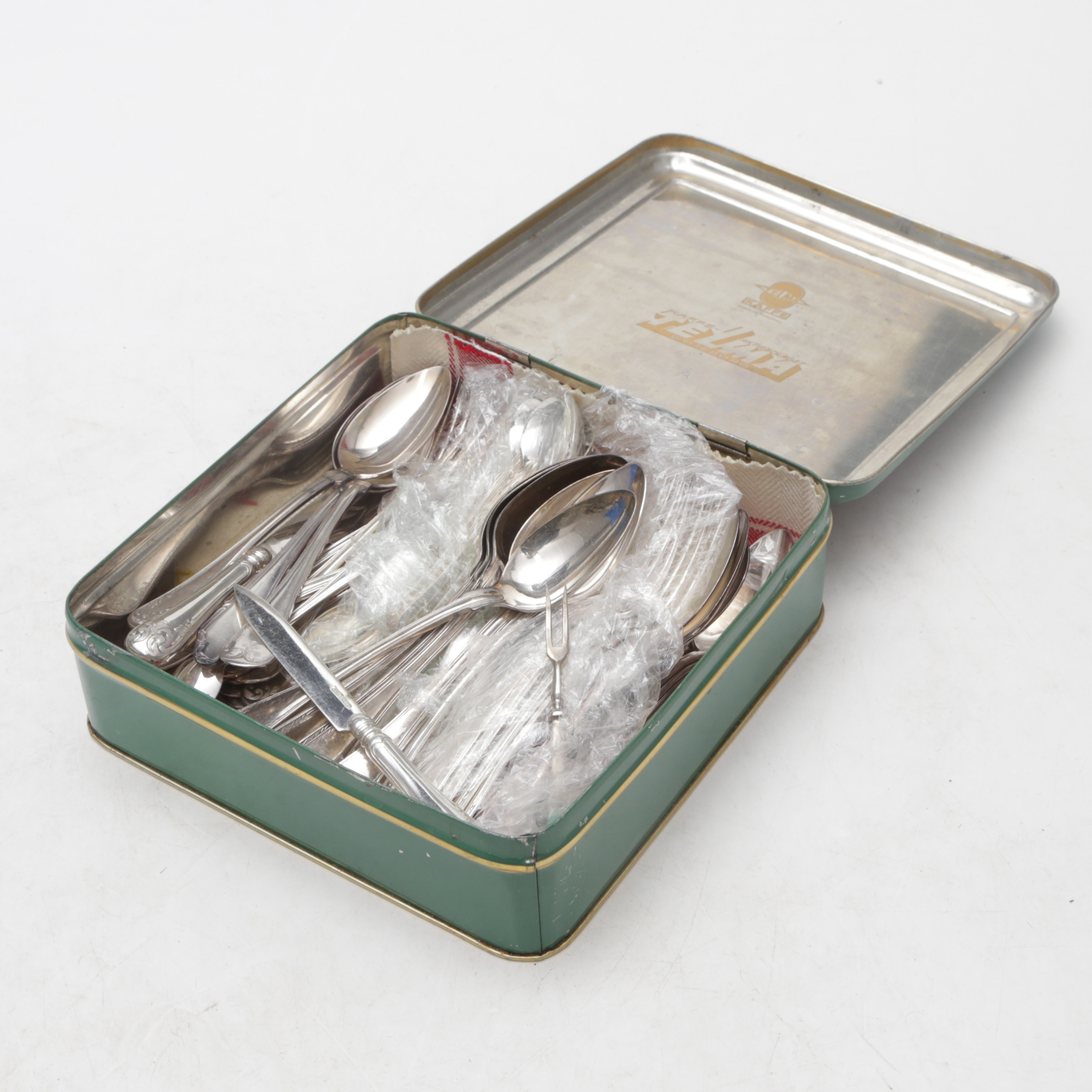 4187716. Cutlery, nickel silver, in tin box.