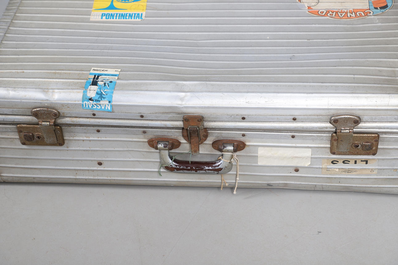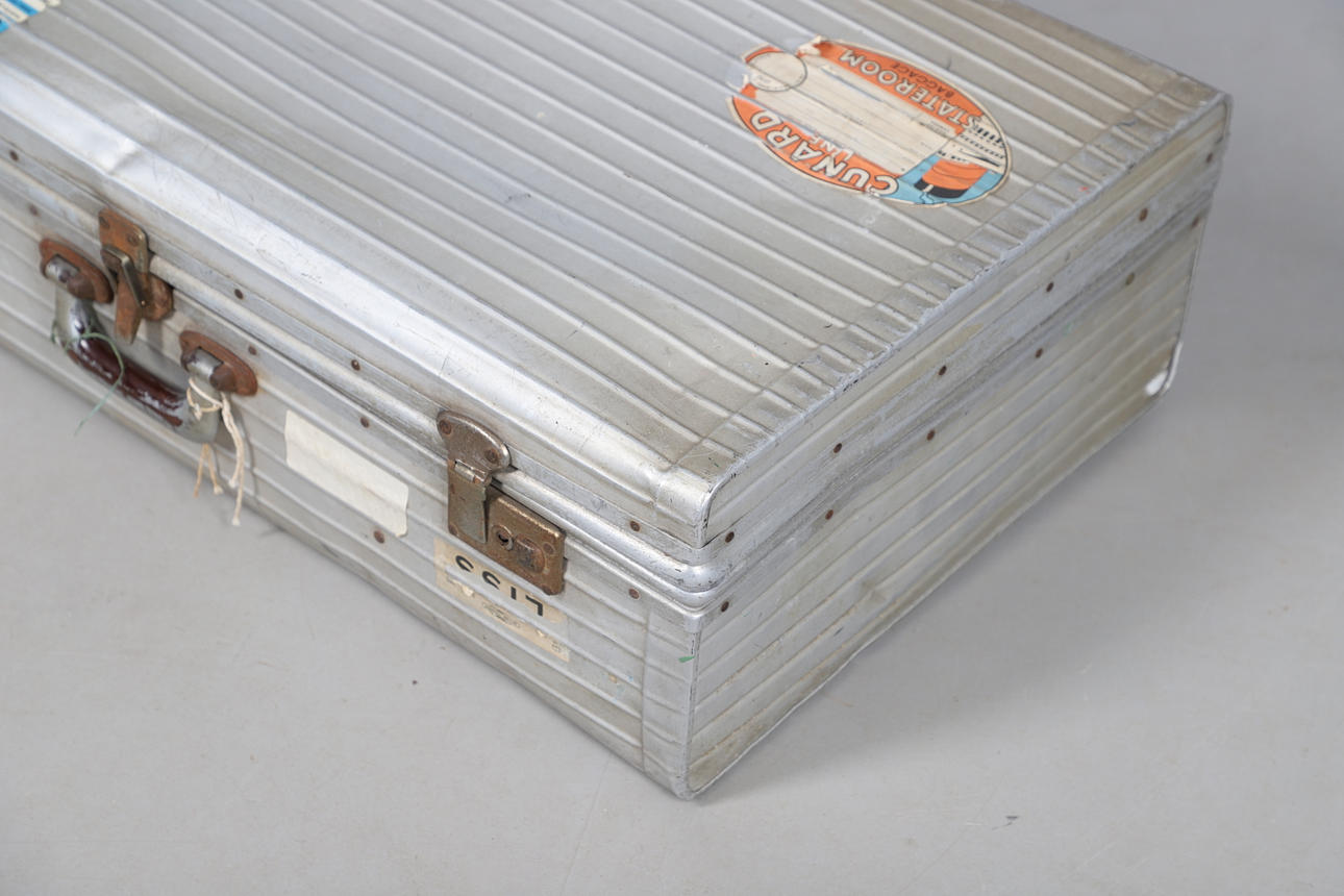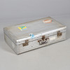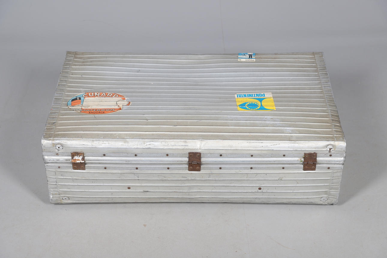 Of lightweight metal construction, with green fabric lining. Height 21.5cm x Width 76.5cm x Depth 45.5cm.