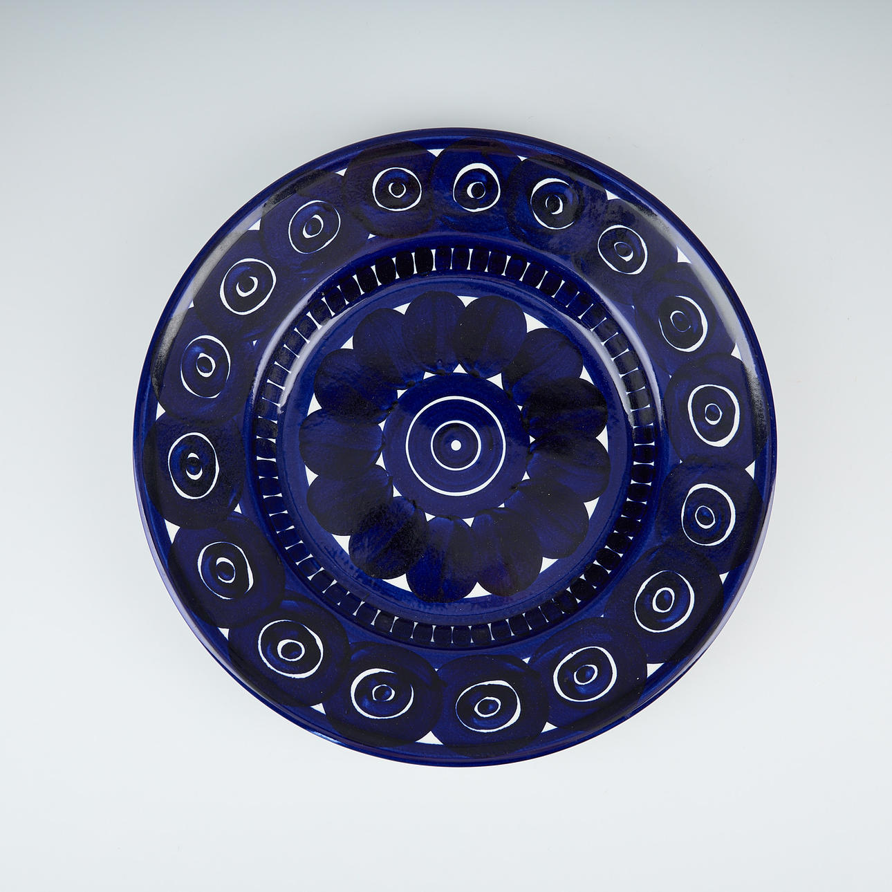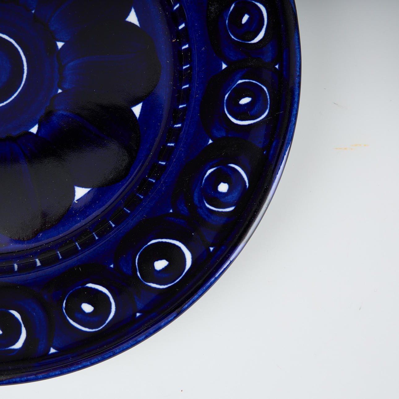 Hand painted decor in blue.