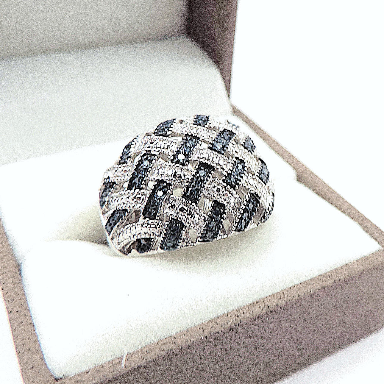 4189219. PLATINUM ON STERLING SILVER BLUE DIAMOND RING.
