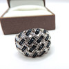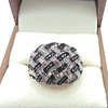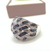 A superb designer crisscross ring in sterling silver with a platinum overlay set with Blue Diamond gemstones. Ring size O.