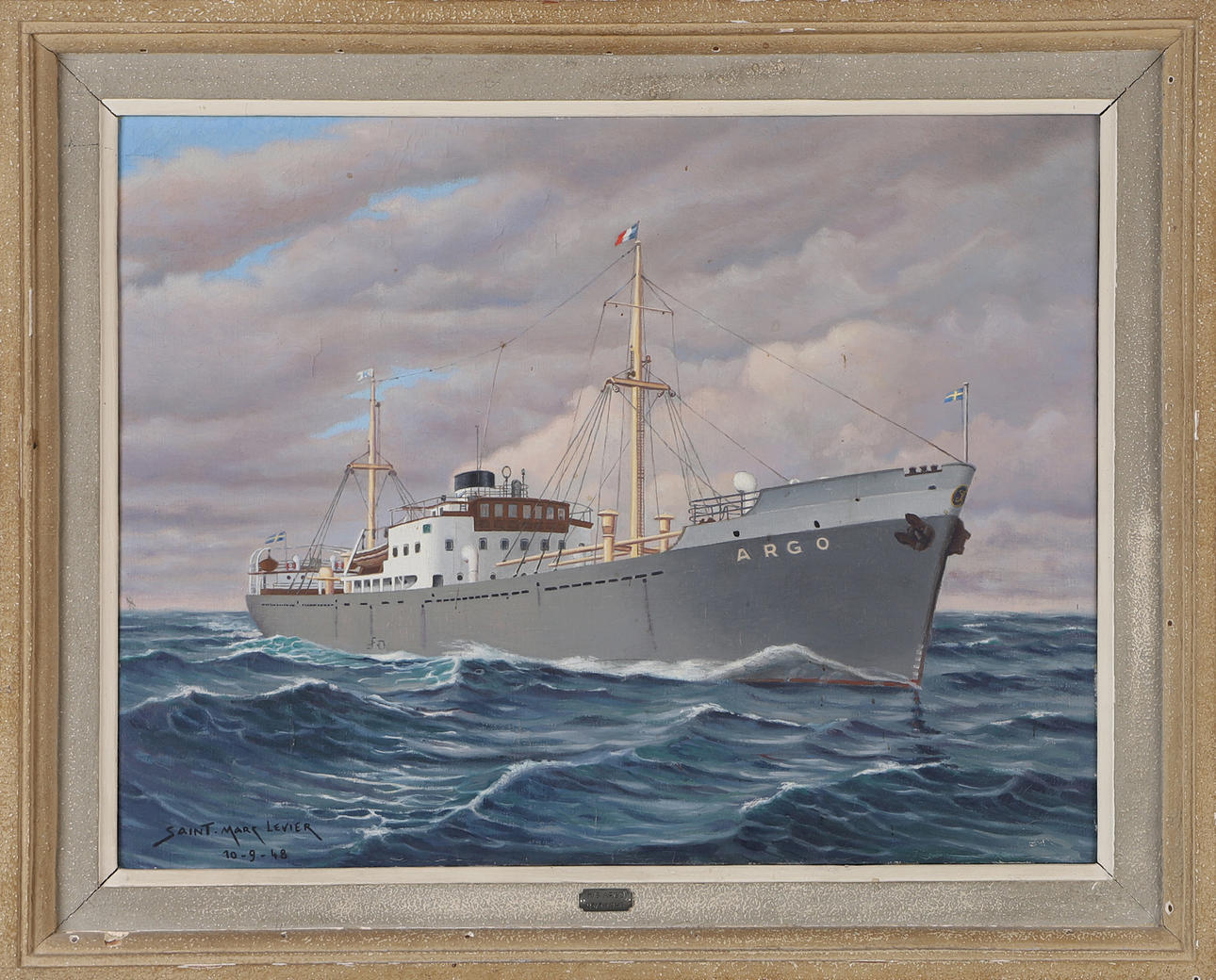 MARC LEVIER. “M/S Argo”, oil on canvas, signed.
