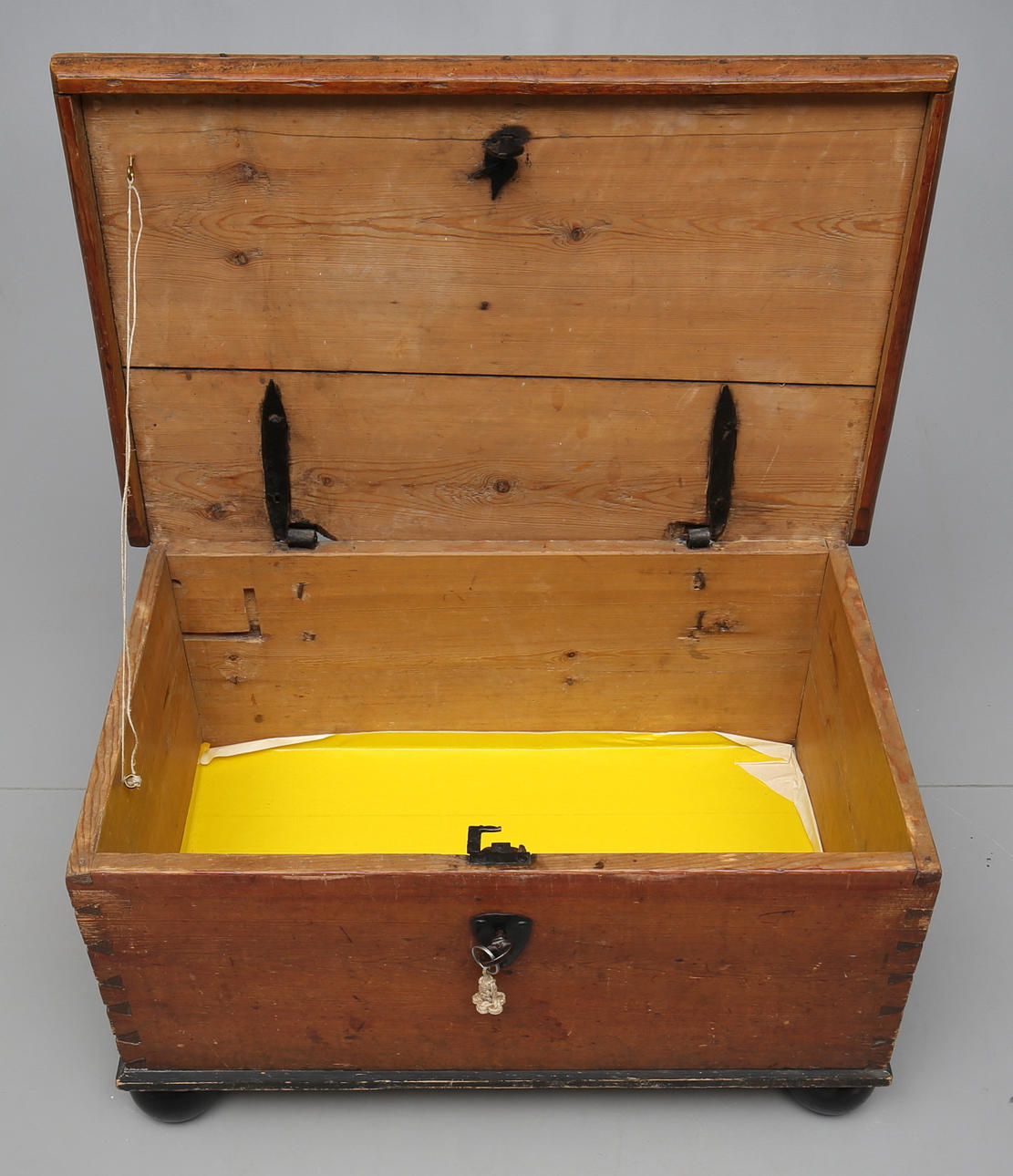 Fittings forged. Fold-up cover with storage behind. Length 80. Width 49. Height 41 cm.