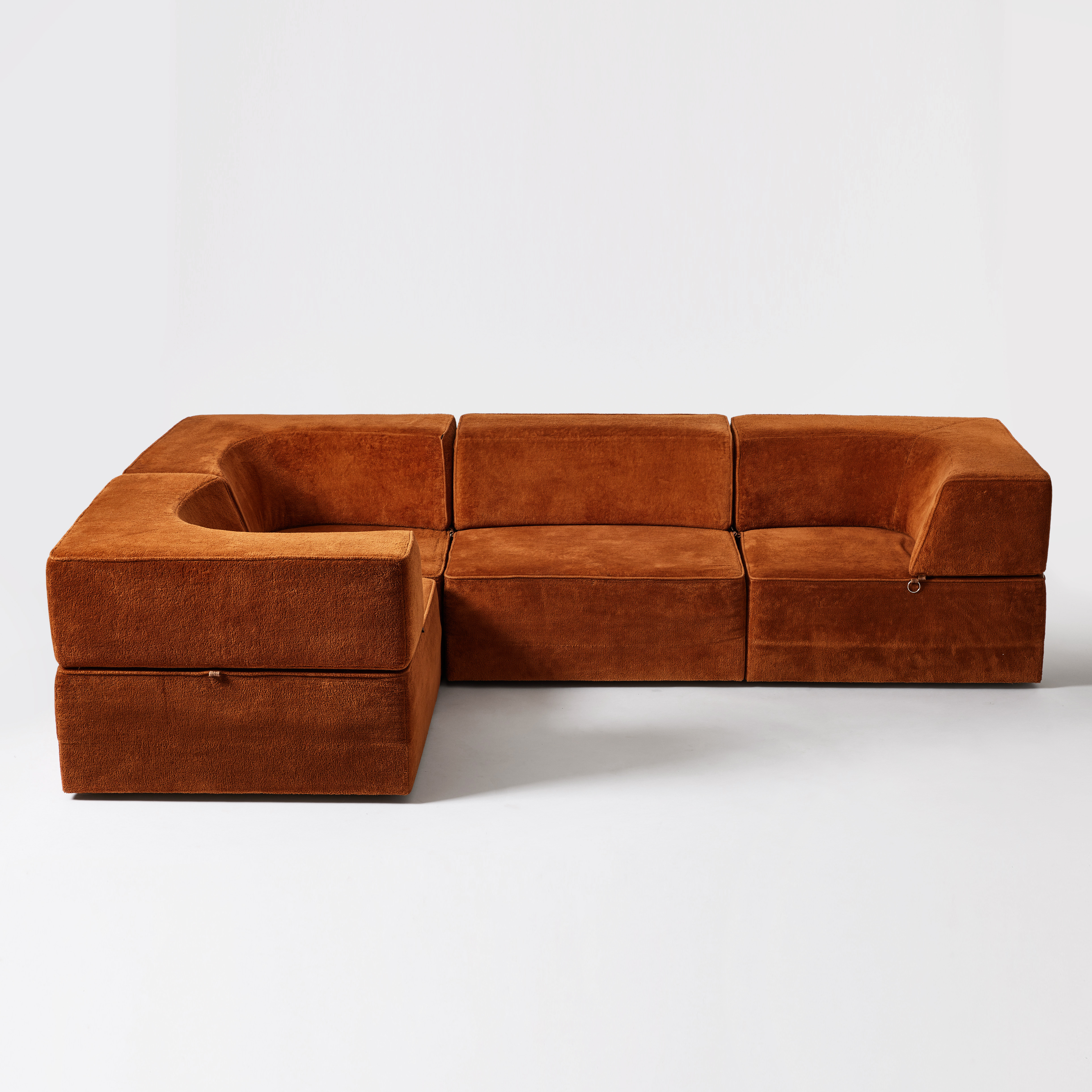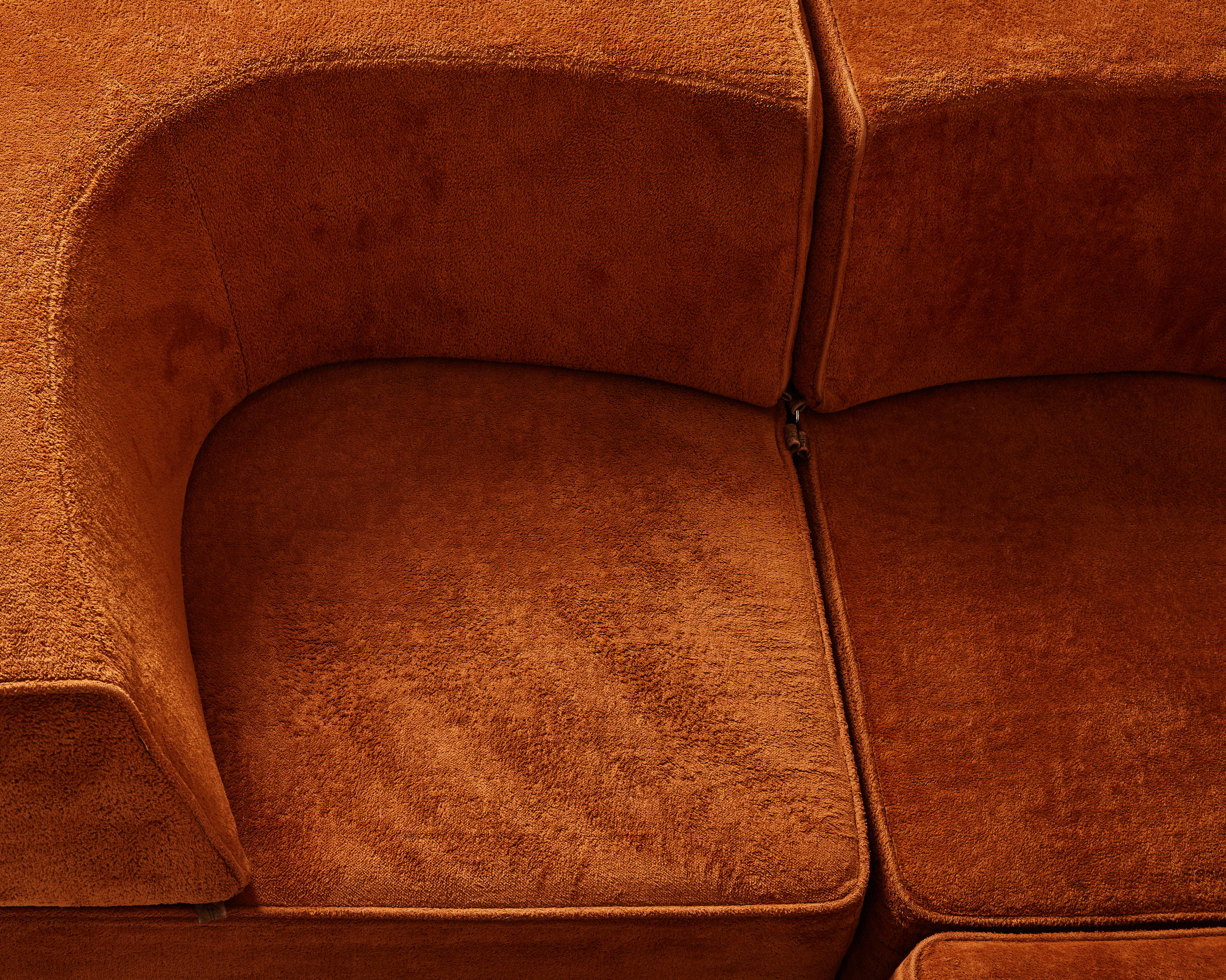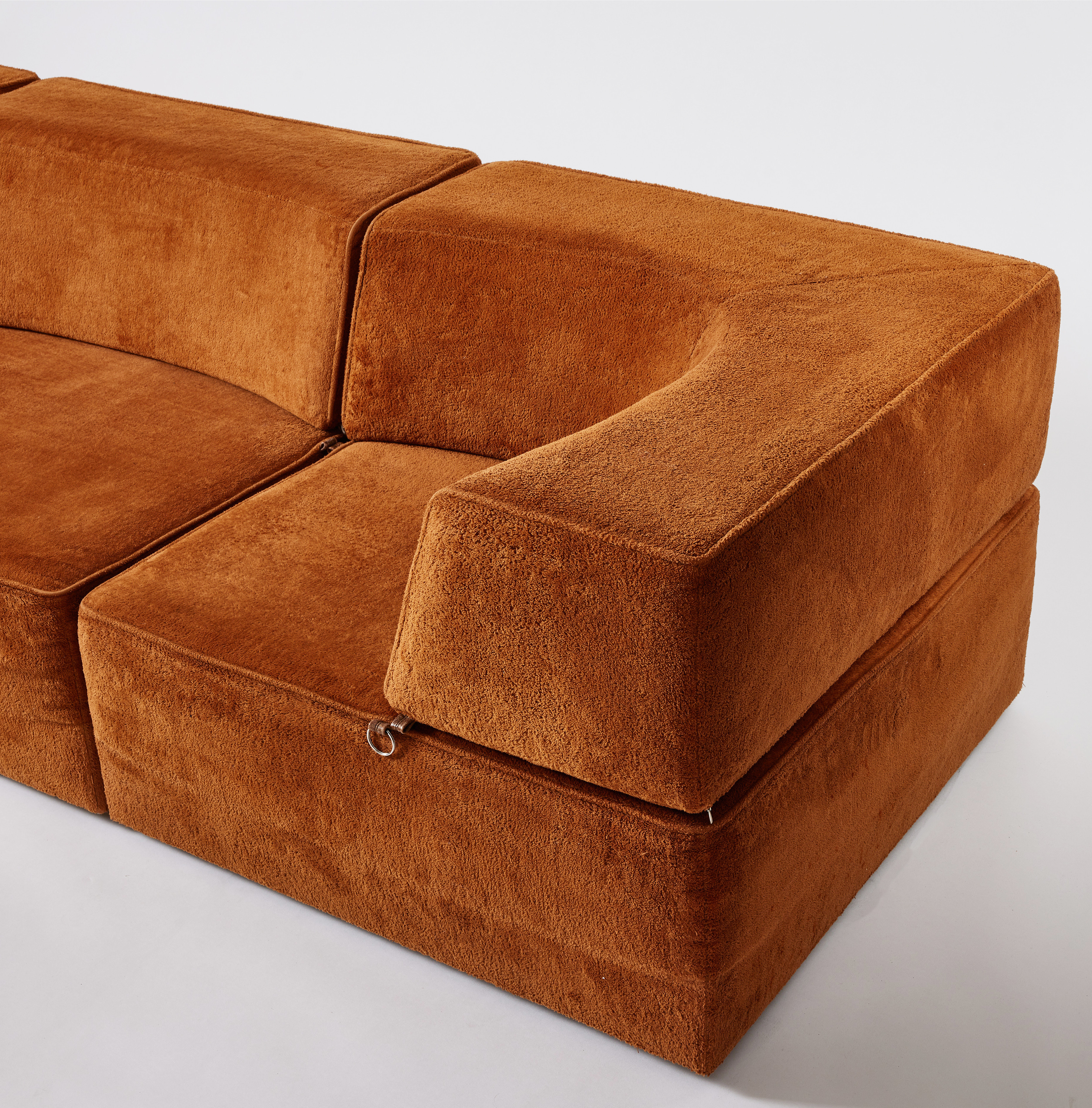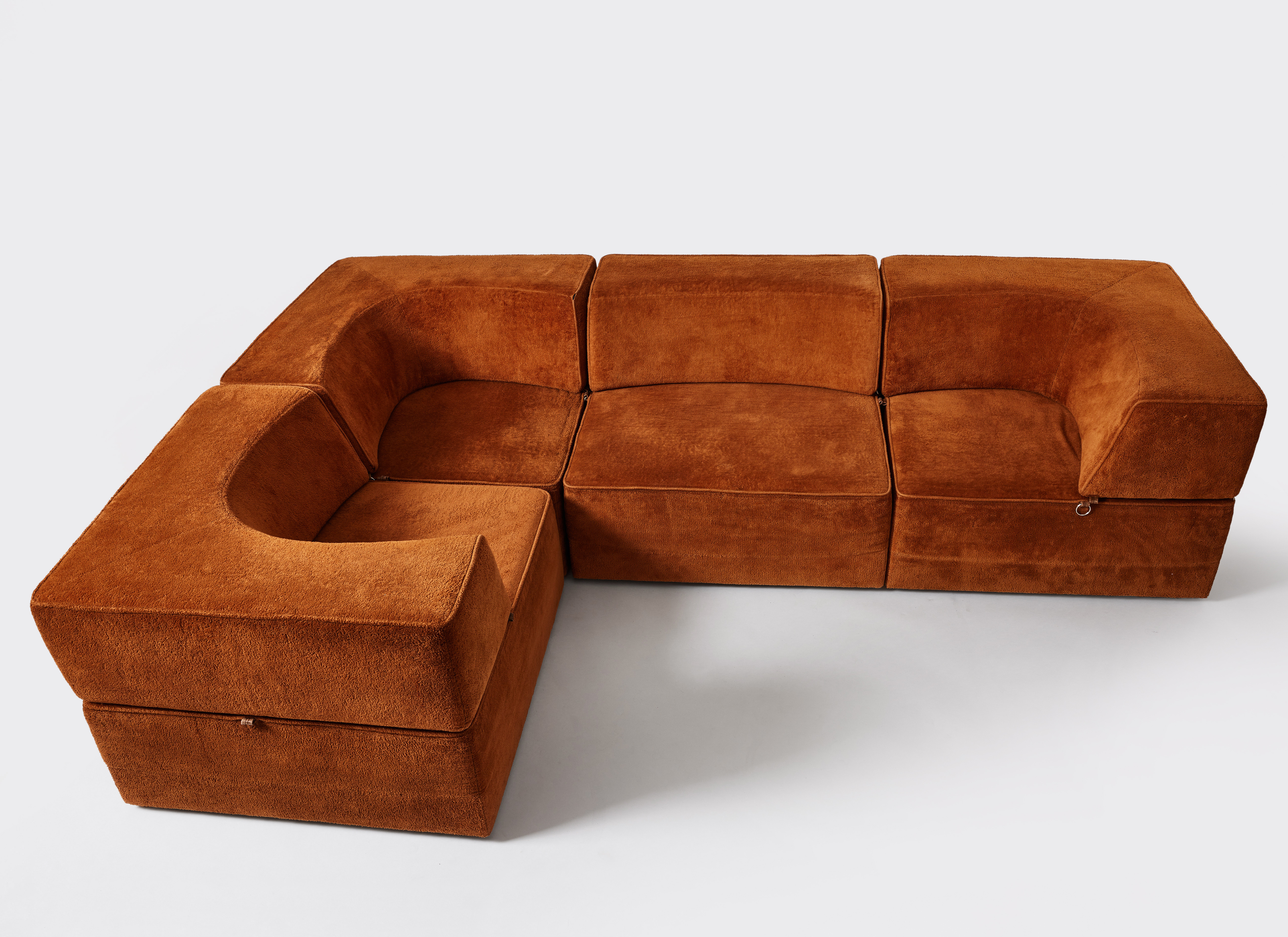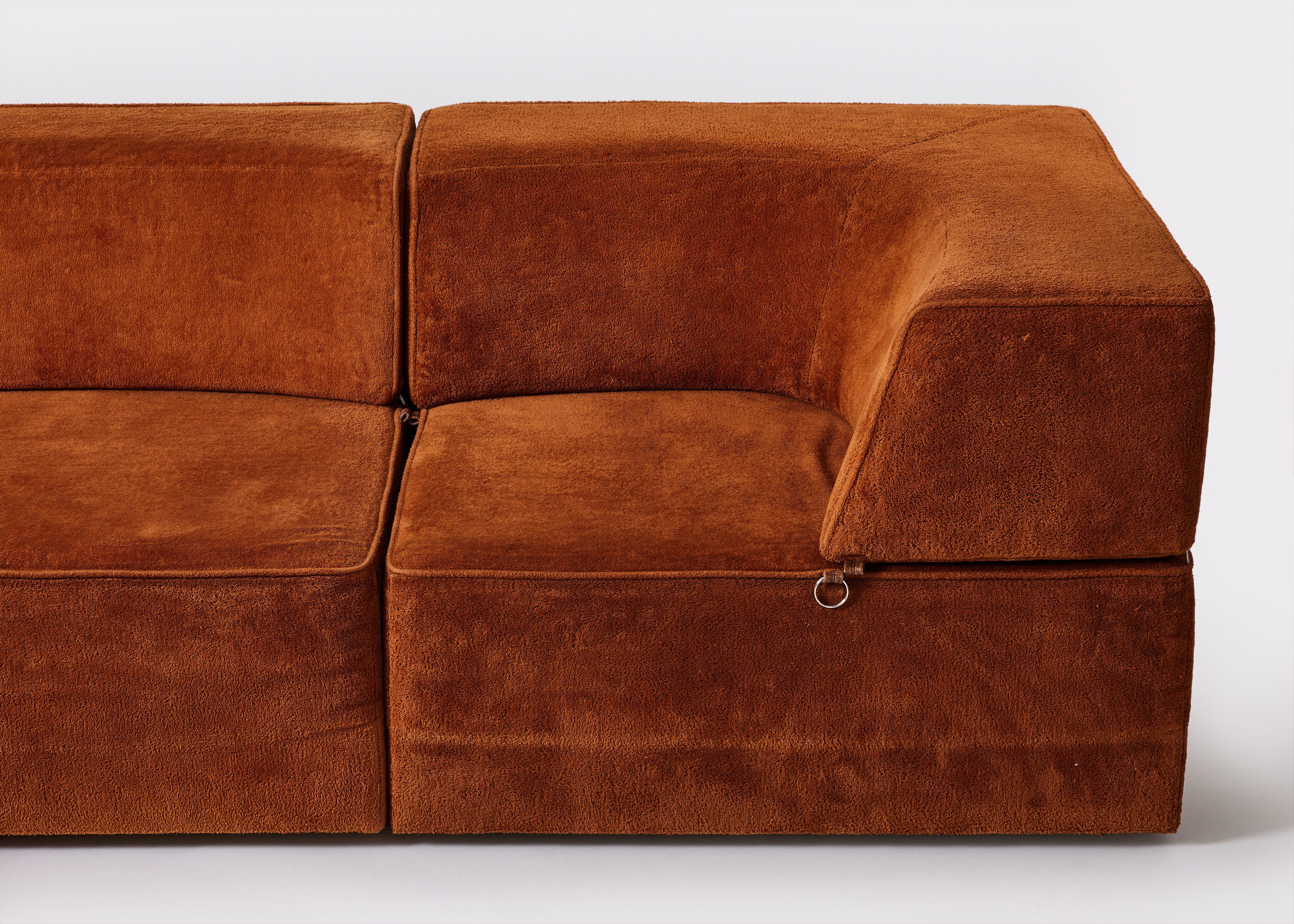 276. 4191590. MODULAR SOFA, 1970s, solid frames upholstered in brown fabric.