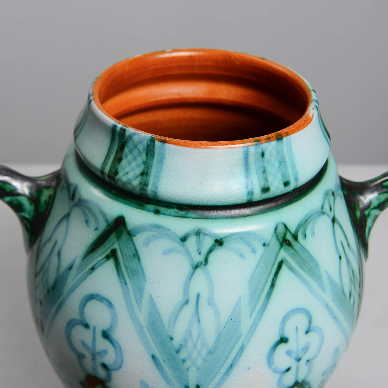 Glazed earthenware. Curl urn with hangers. Model 1830. Height 31 cm.