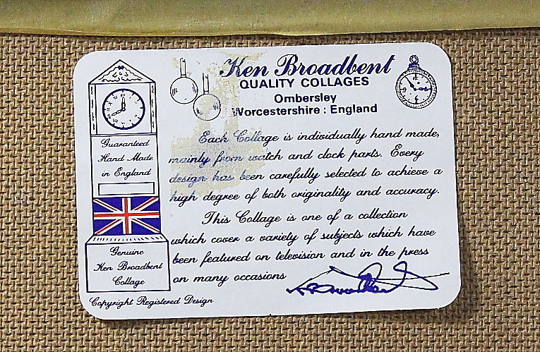 419340. WALL CLOCK, Ken Broadbent collage.