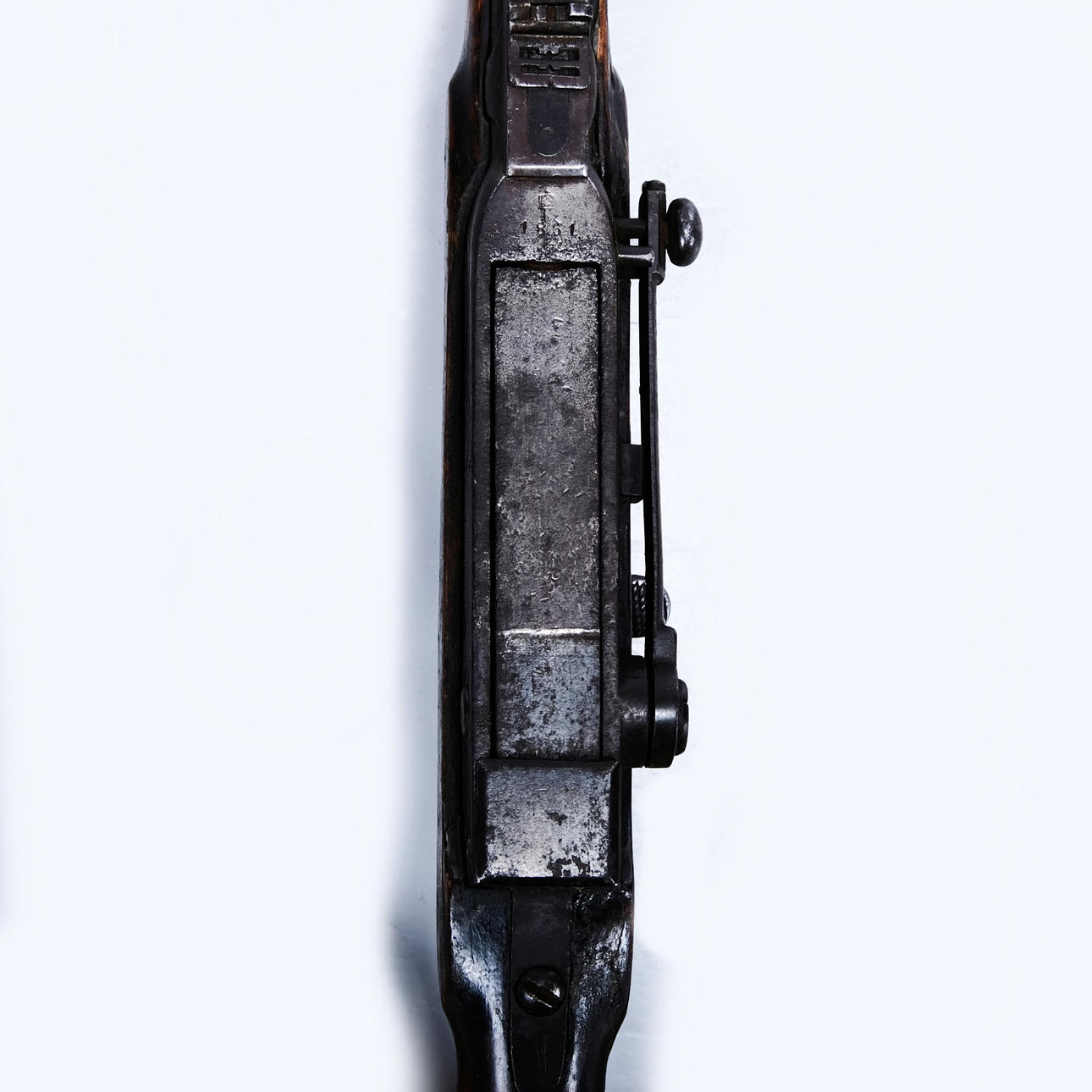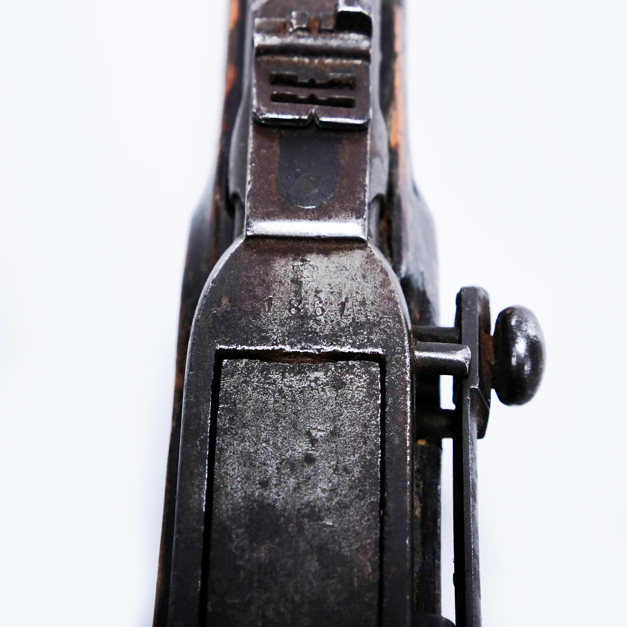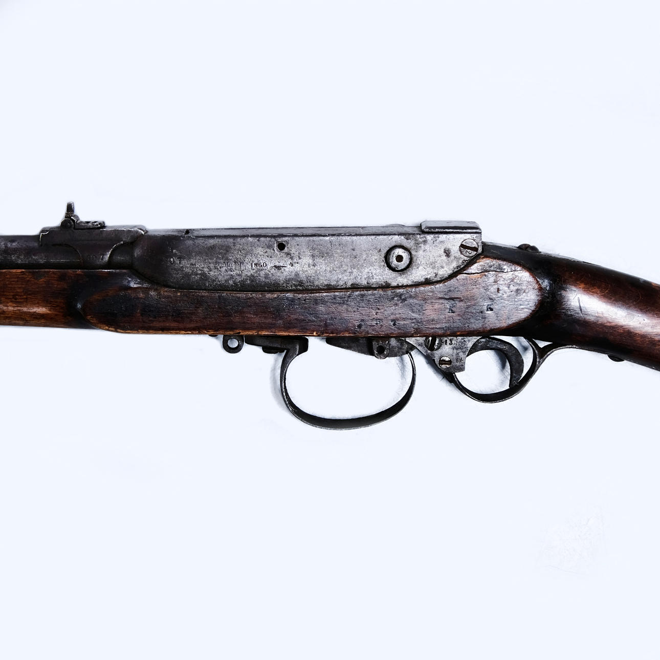 Wear and age based on wear, rust, damage to sight, shortened spout at mouth, no other remarks.