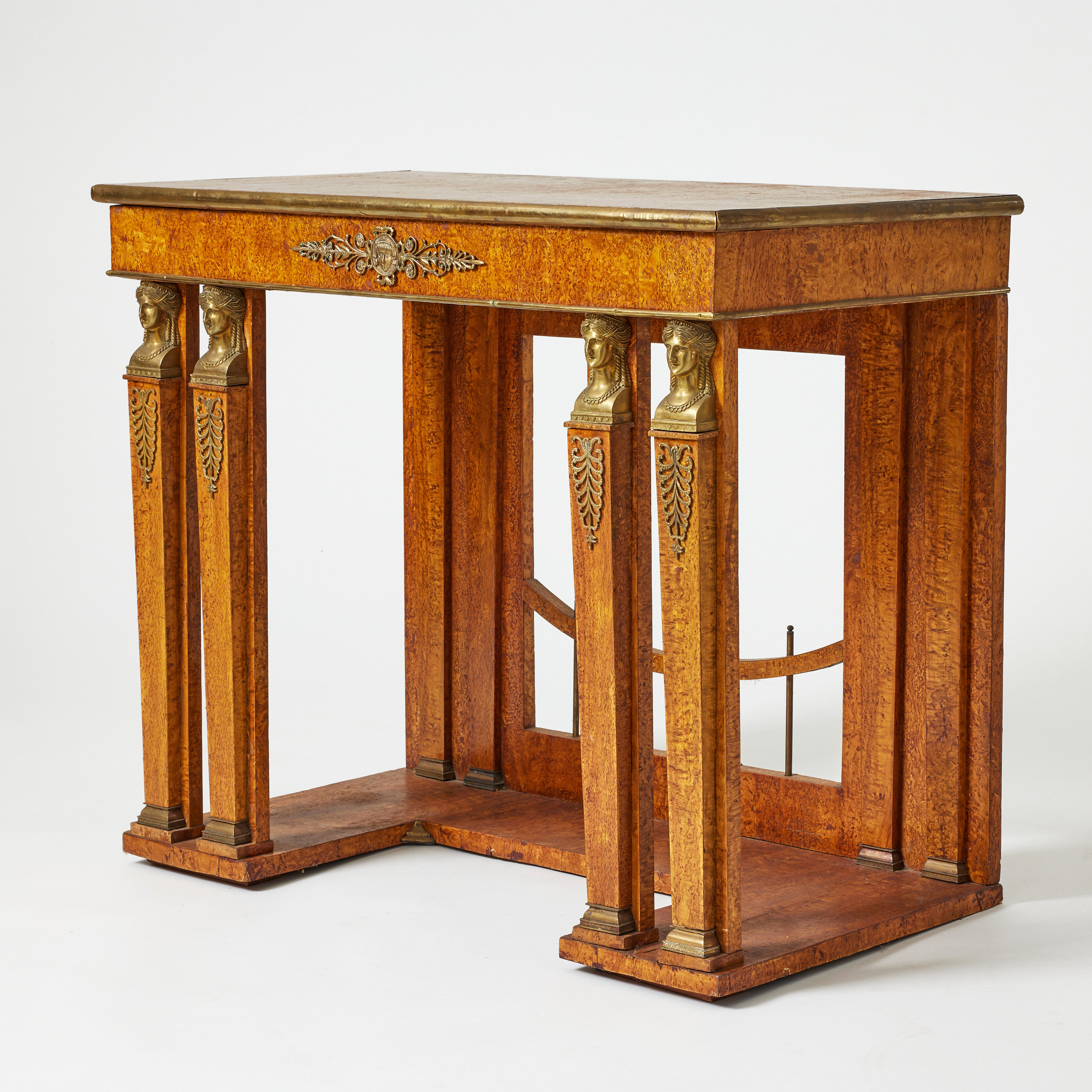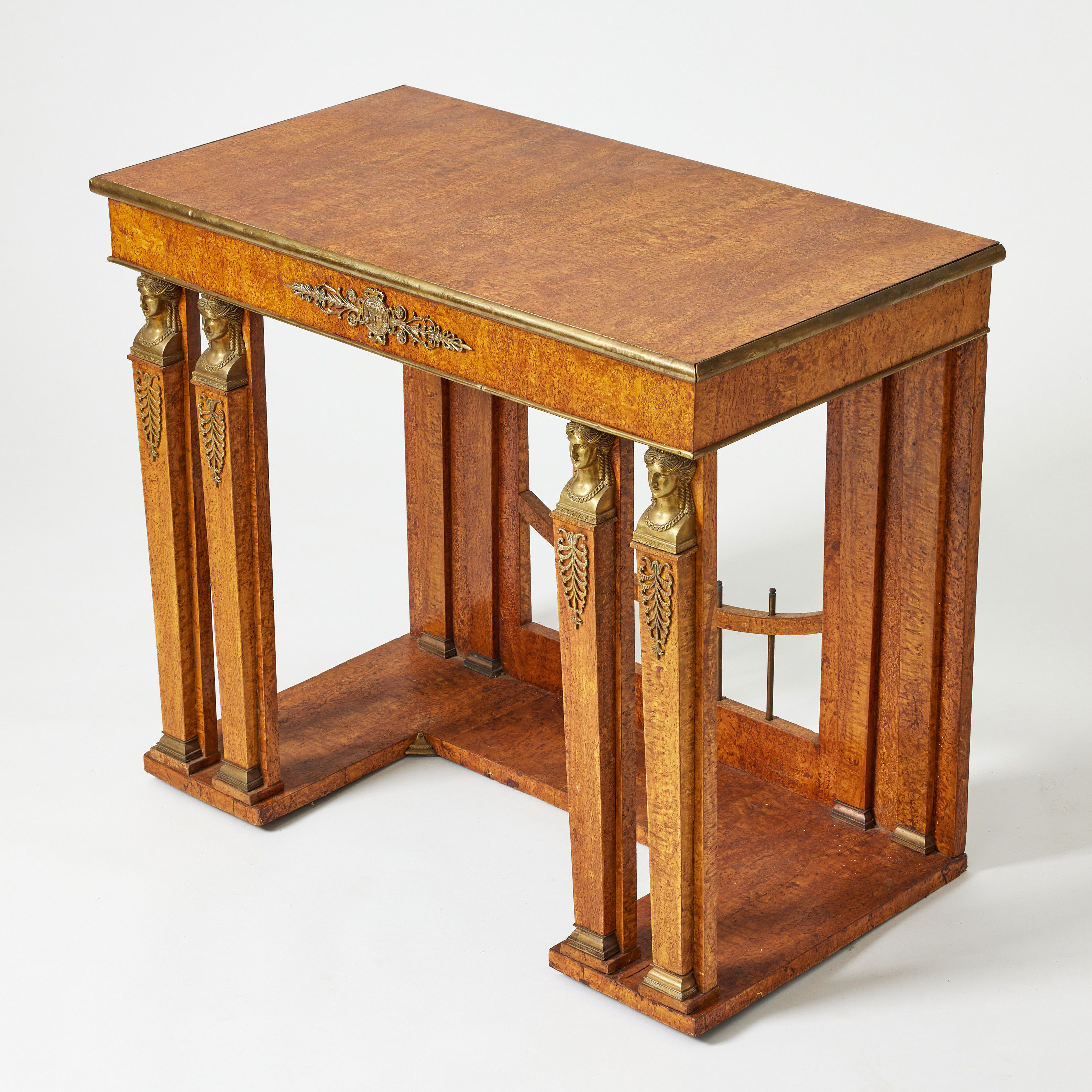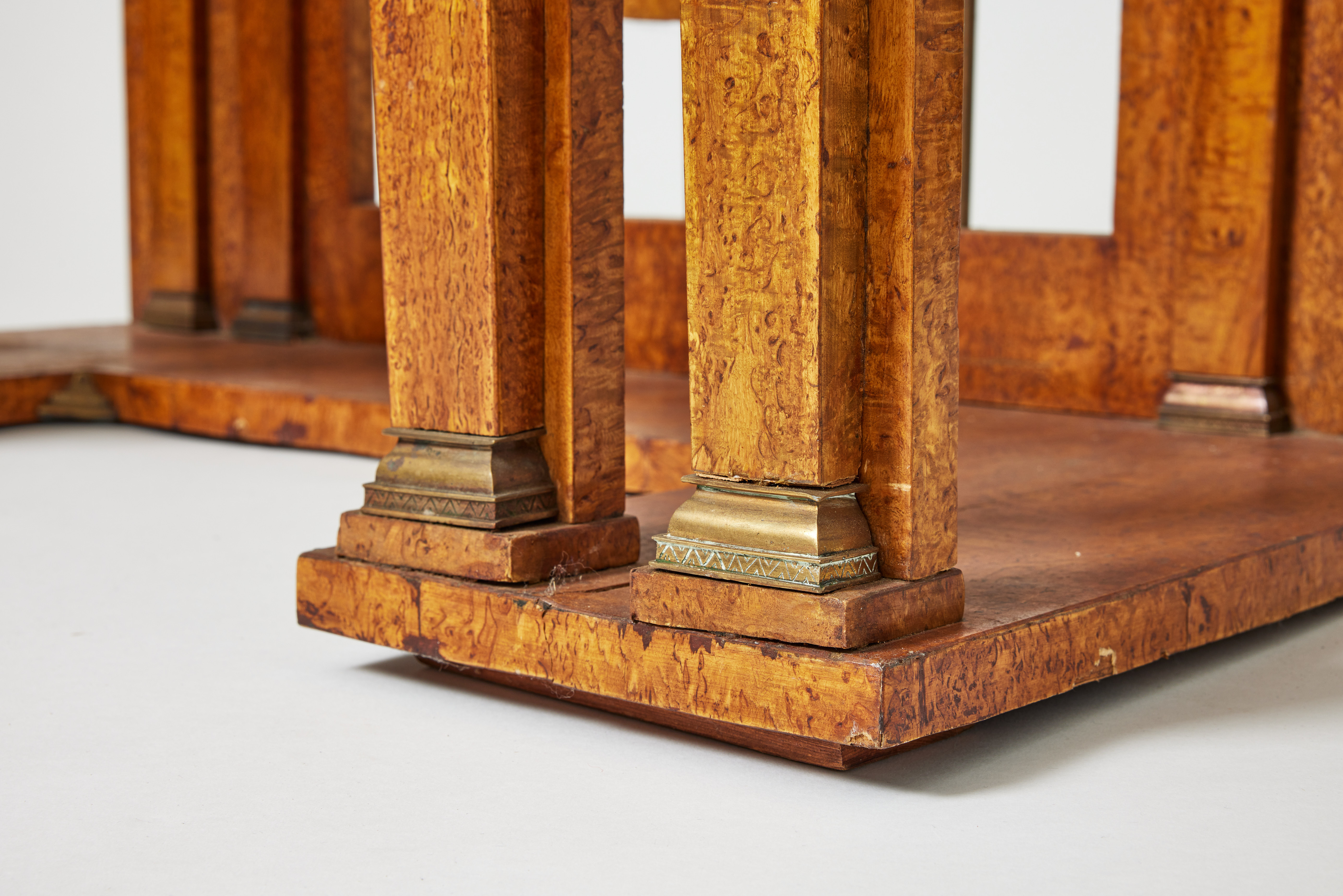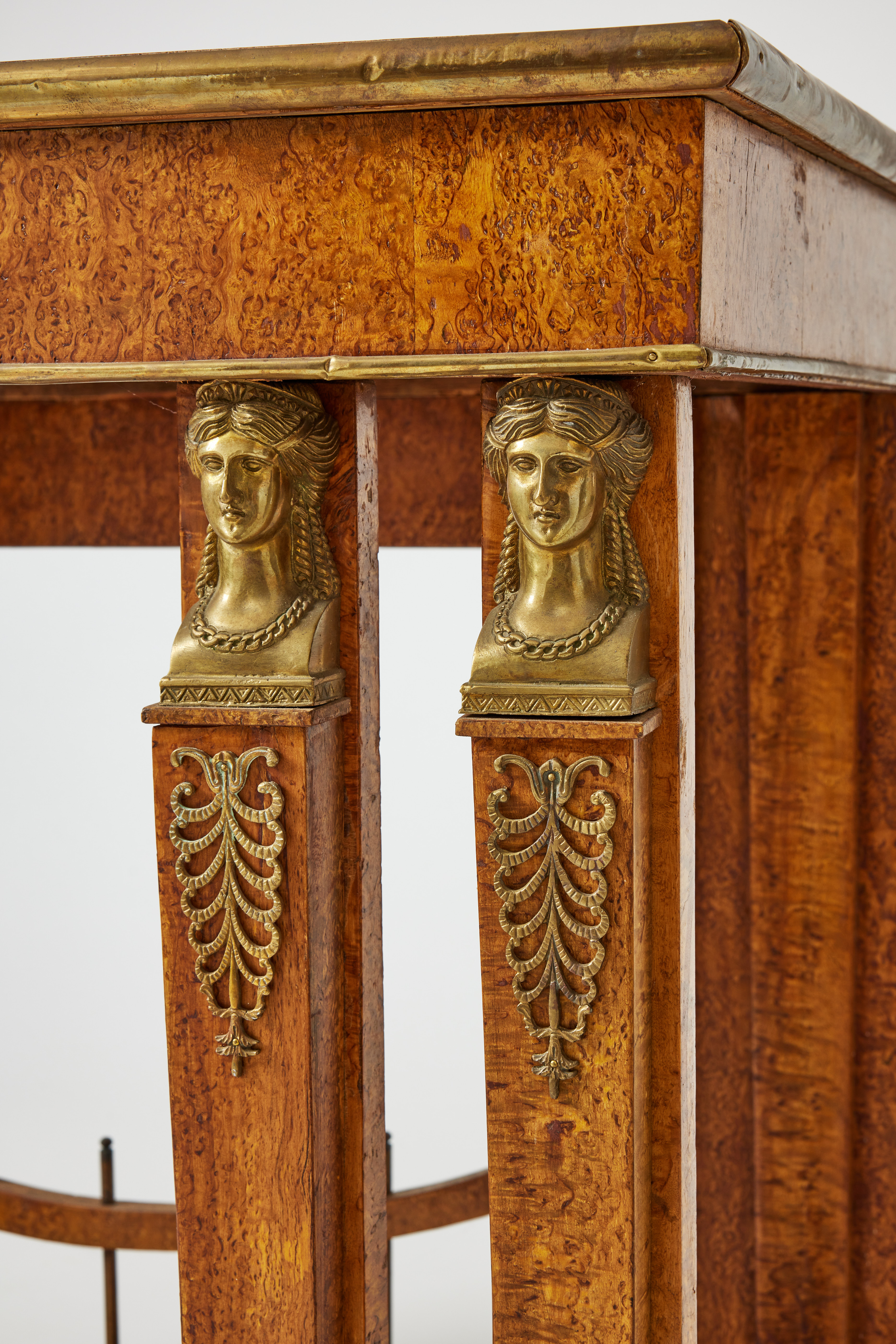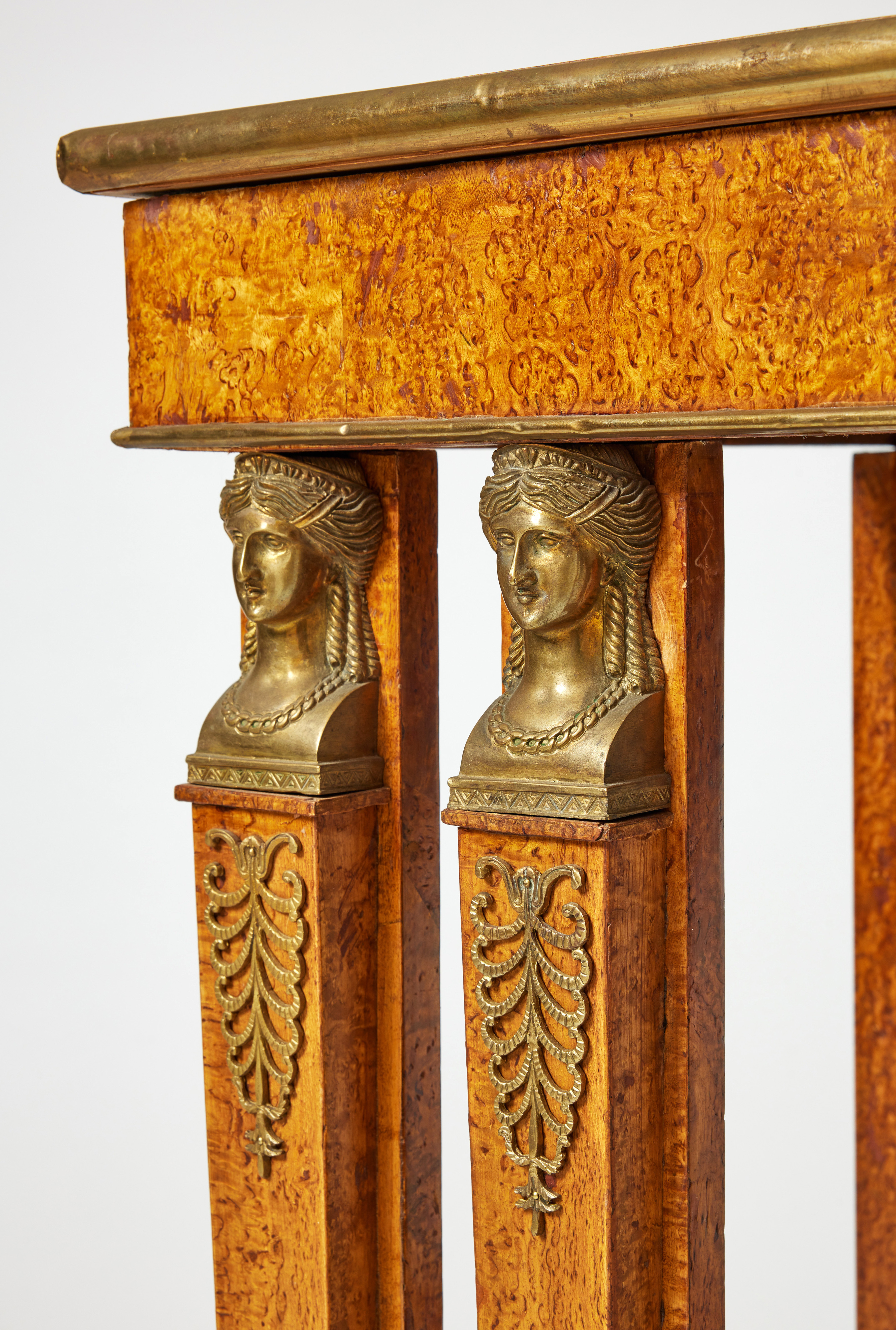 4193633. A console table, Russia, second half of the 19th century, frame in pine, veneered with Karelian Masur birch, brass fittings.