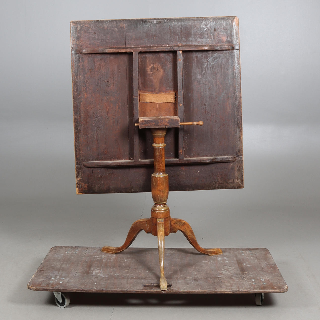 All-root veneered table top, leg stand hardwood. Length 87, width 90, height 75 cm.