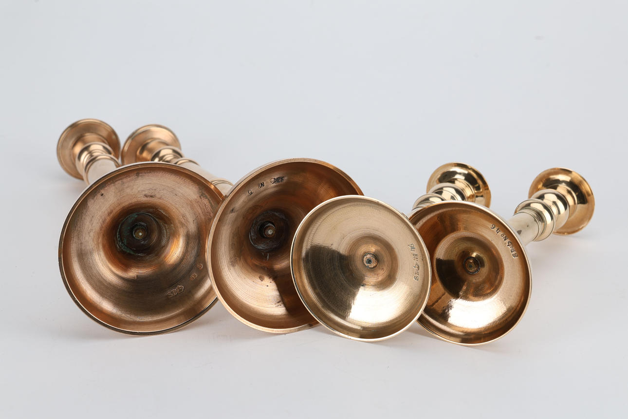 One pair, marked 46, height 19 cm One pair, marked 5, height 25 cm.