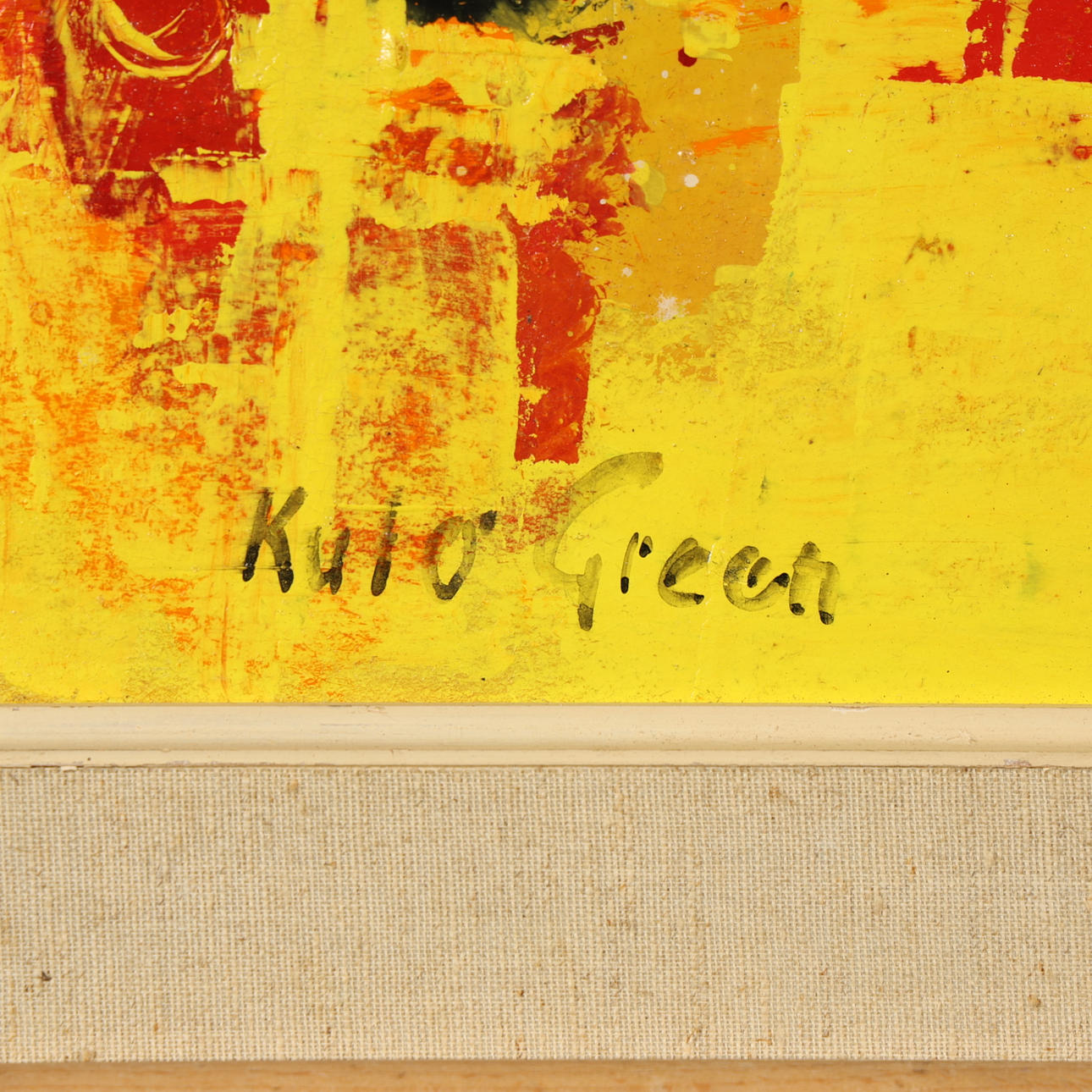 4196510. KULO GREEN. OIL ON PANEL, “Yellow day, fun day” signed.