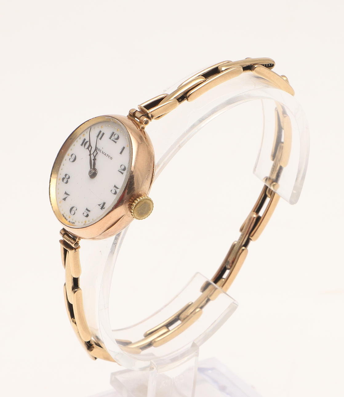 the circular dial signed Rolwatco, with Arabic numerals, on a gold expanding bracelet, 17.4 grams.