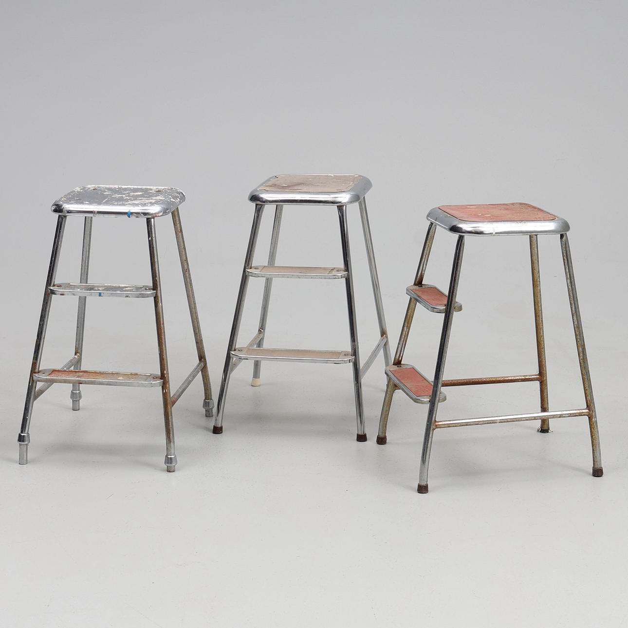 Normal wear and tear, very worn, broken/missing vinyl on seat and step, rust.