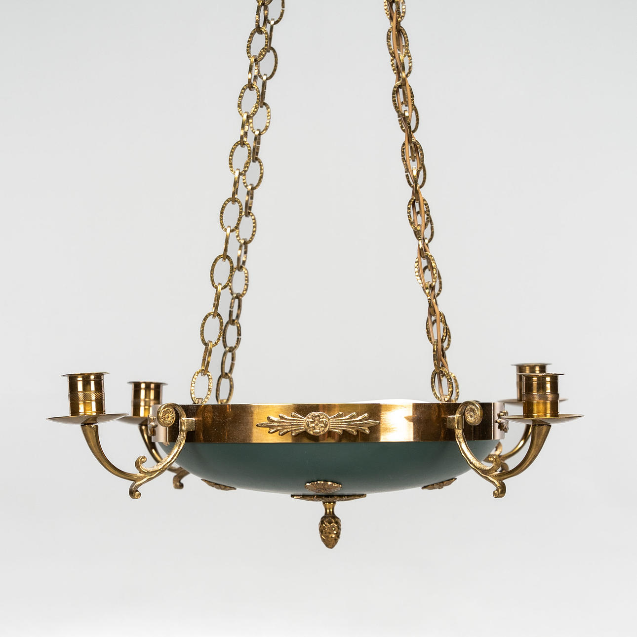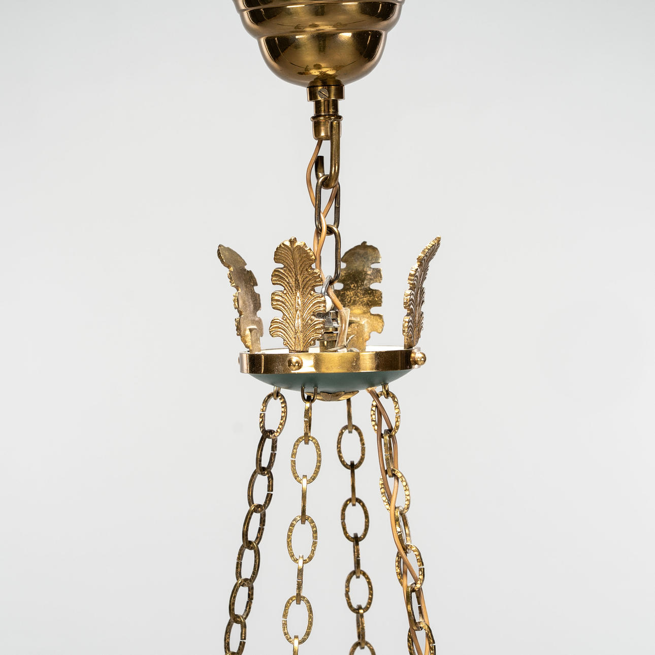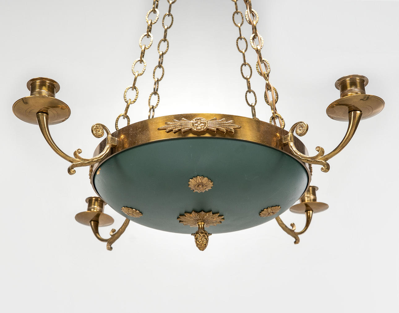 Brass and sheet metal, white painted inside. Four pieces of light arms.