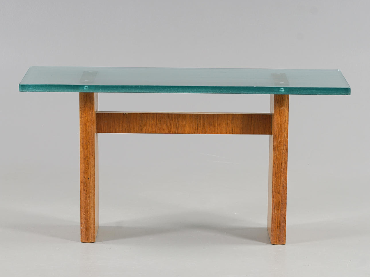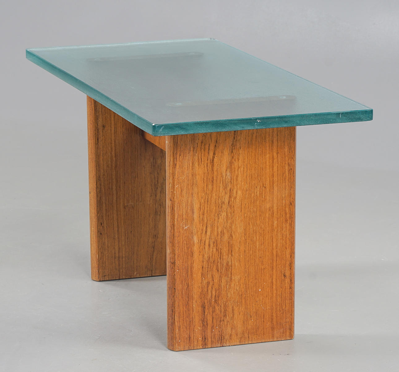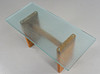 Leg frame veneered with elm, raw glass top.