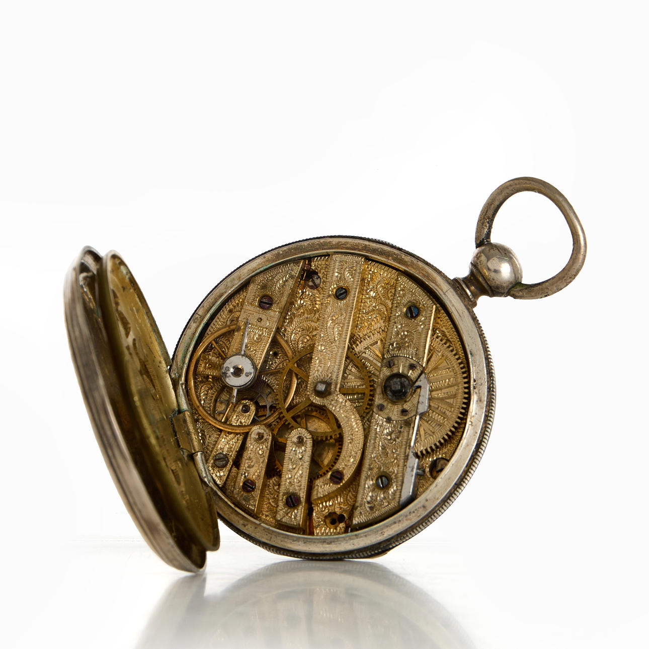 POCKET WATCH (2), silver, key chain.