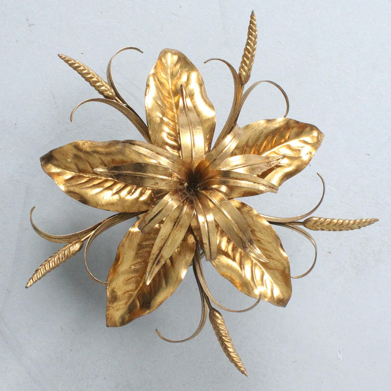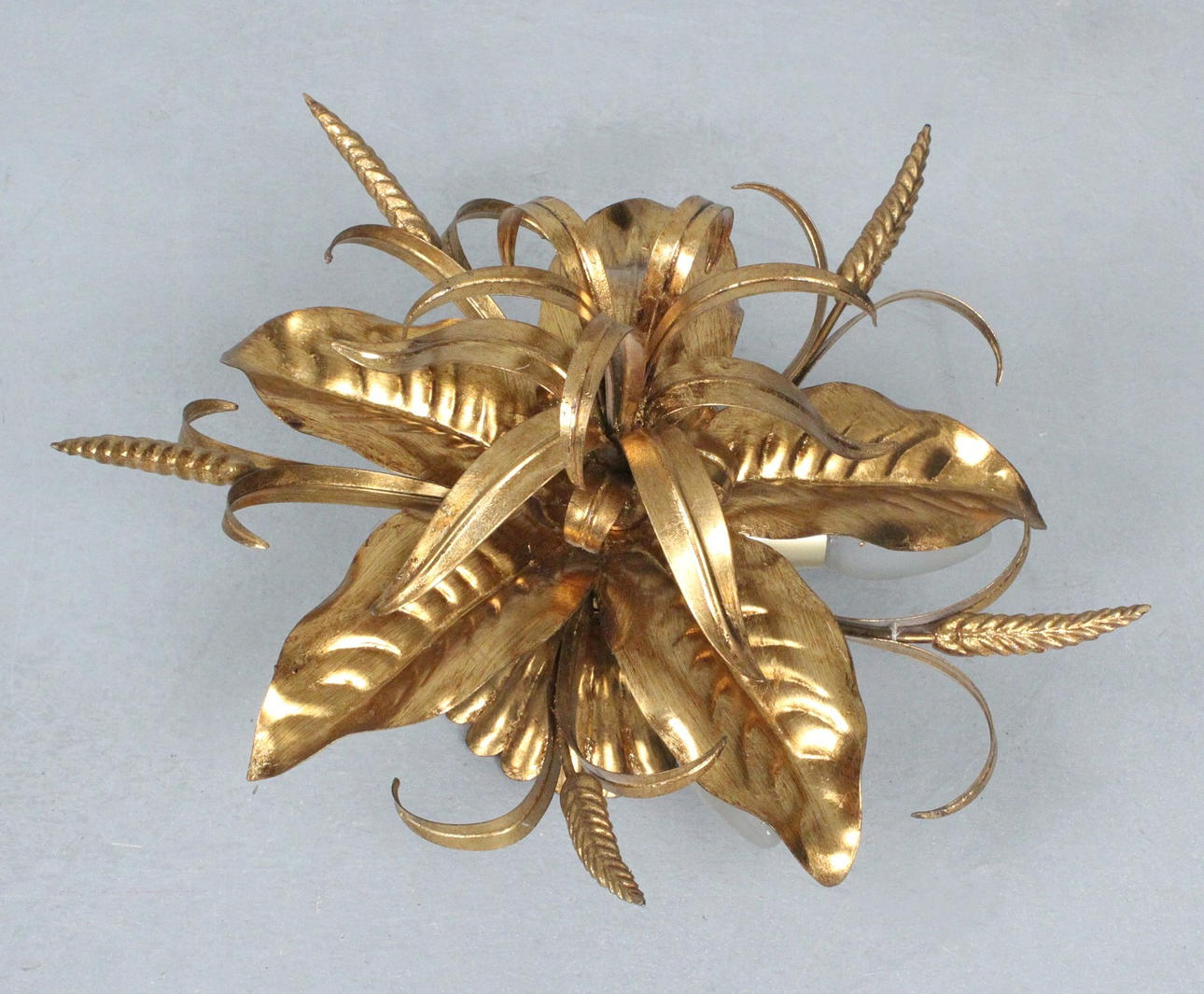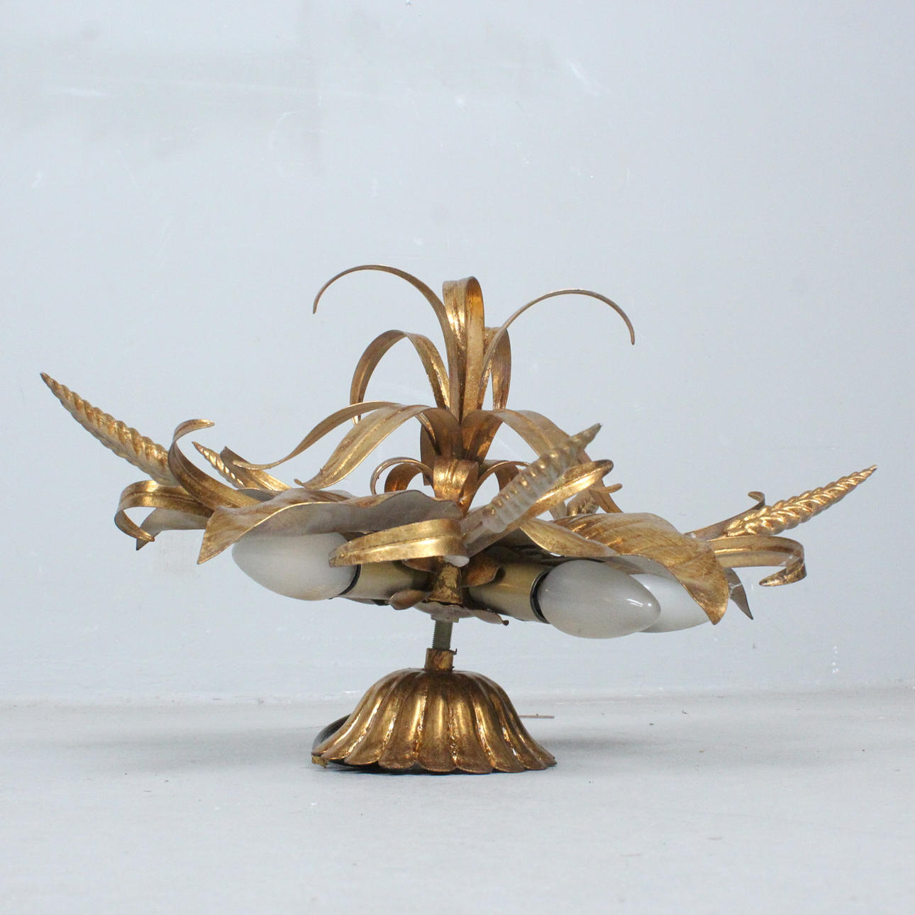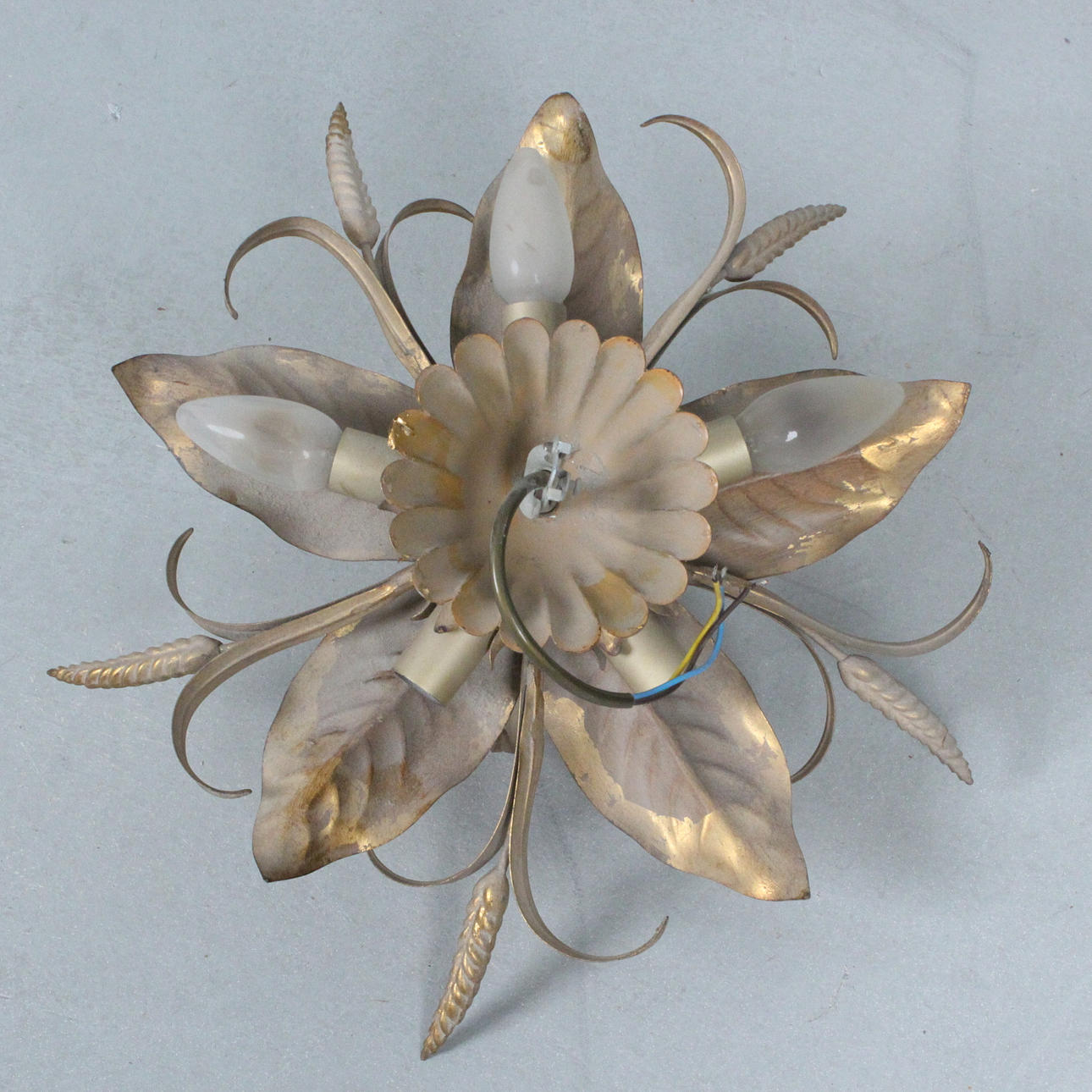 Floral ceiling light with spikes, 1970s, painted metal construction, equipped with 5 burners,