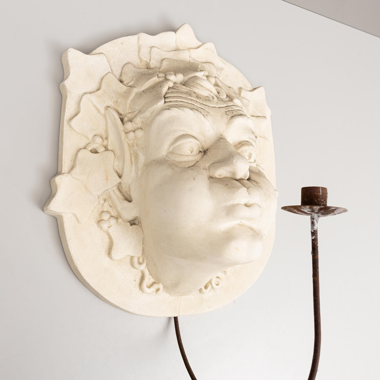 WALL SCULPTURE, Dionysus with candlestick, plaster.