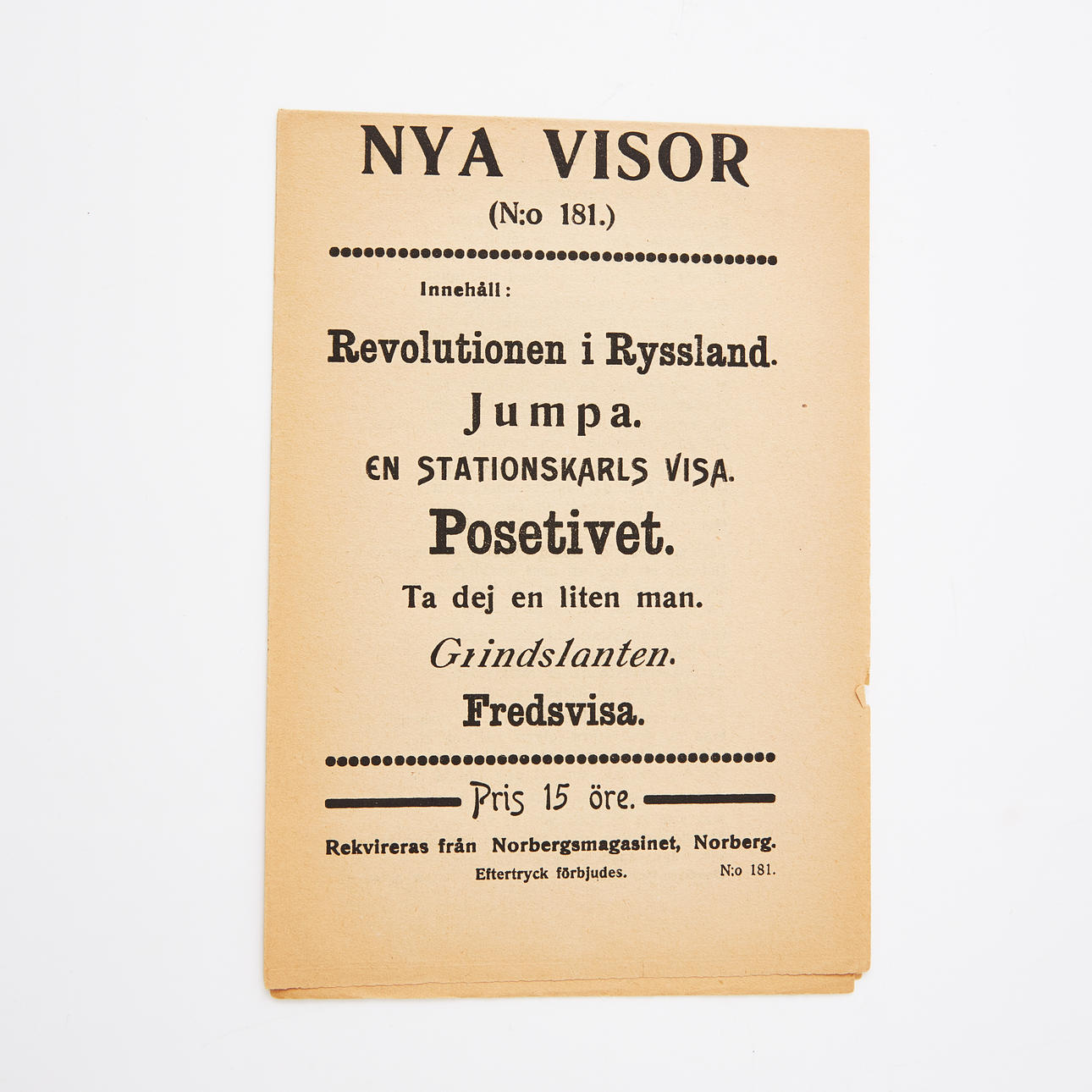 New visor (Nr. 181). Seven verses on a folded sheet, fol. and. The Revolution in Russia and the Peace Visa, 1917. Folded 175 x 120 mm, unfolded 345 x 240 mm.