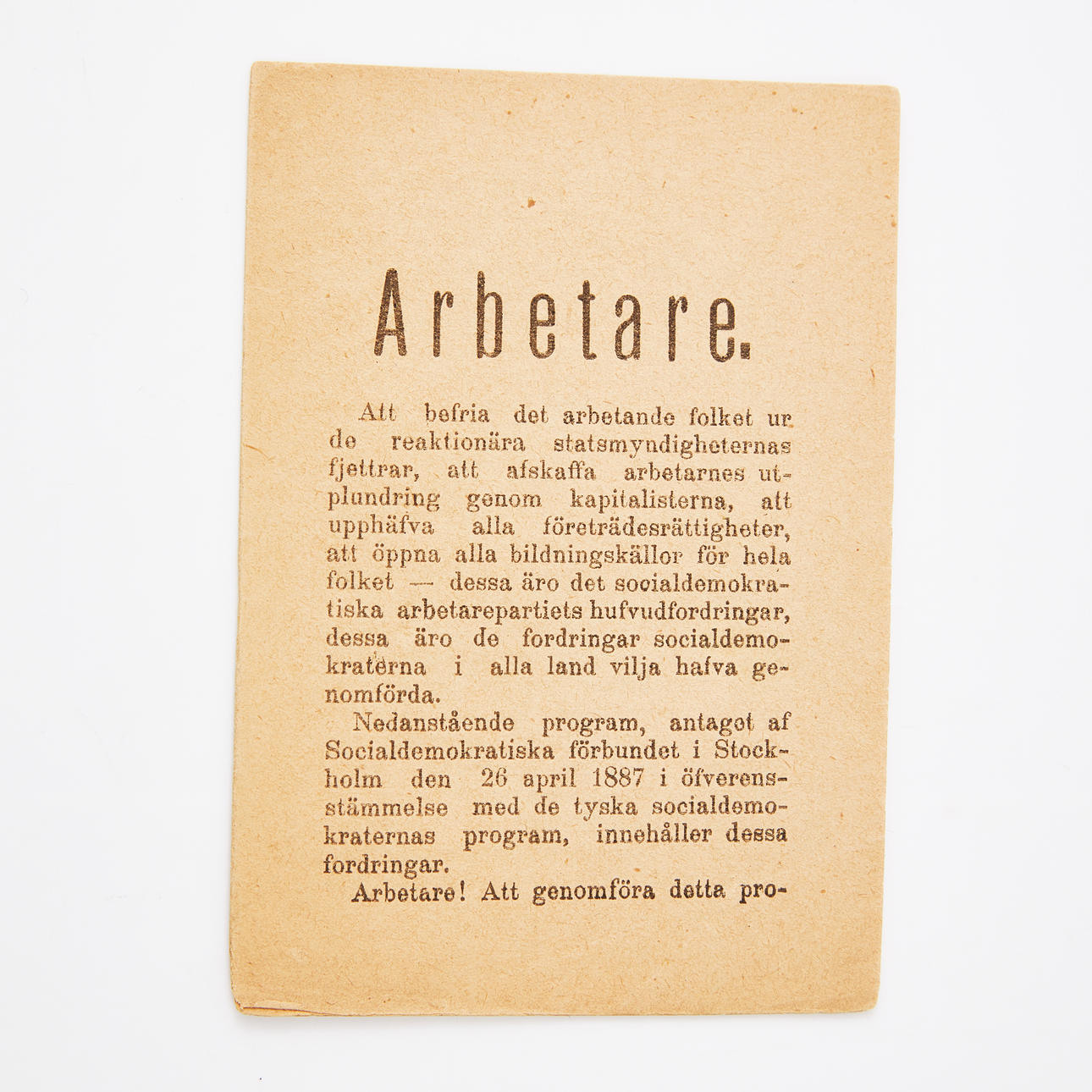 Social Democratic Party Programme from 1887, 8 p., 120 x 85 mm.