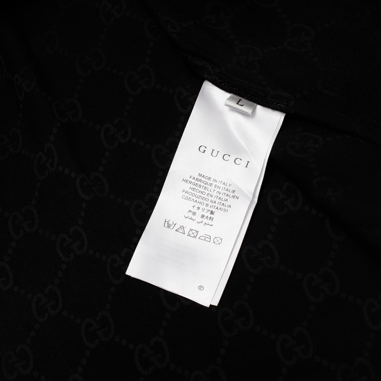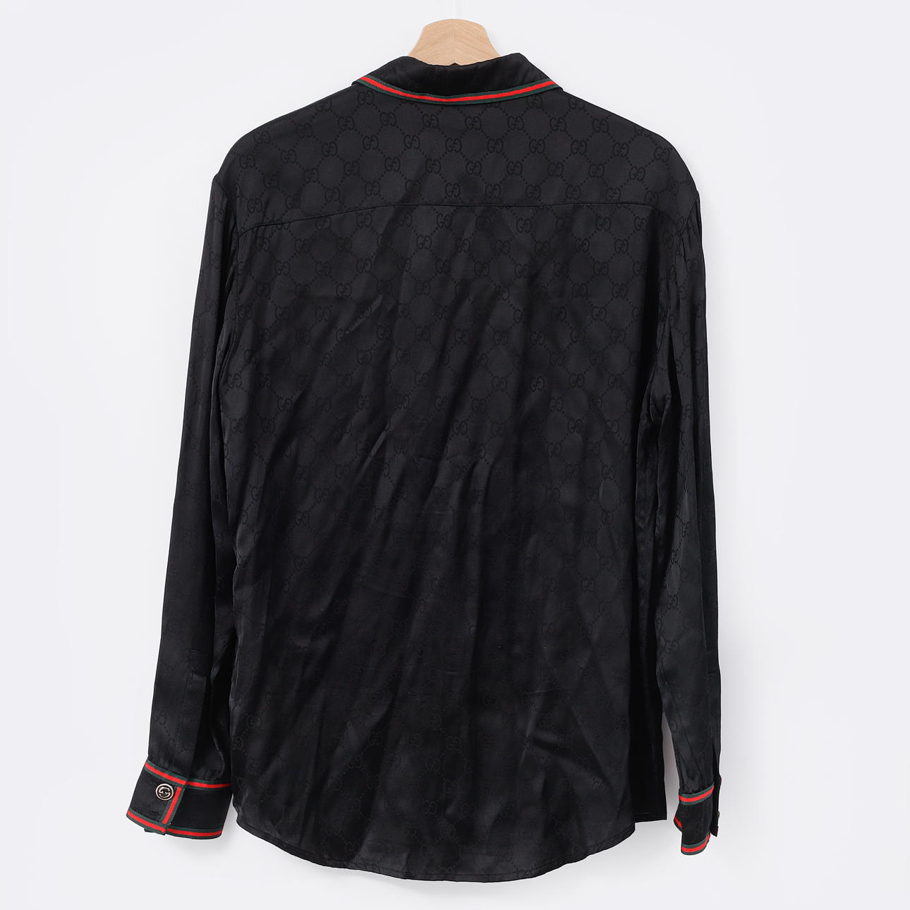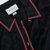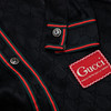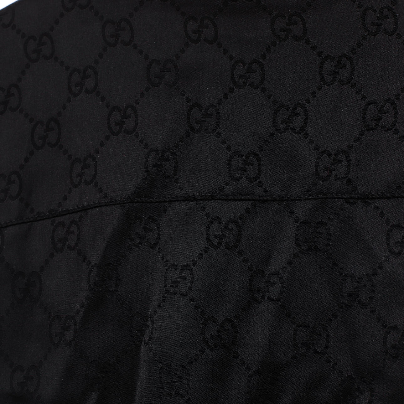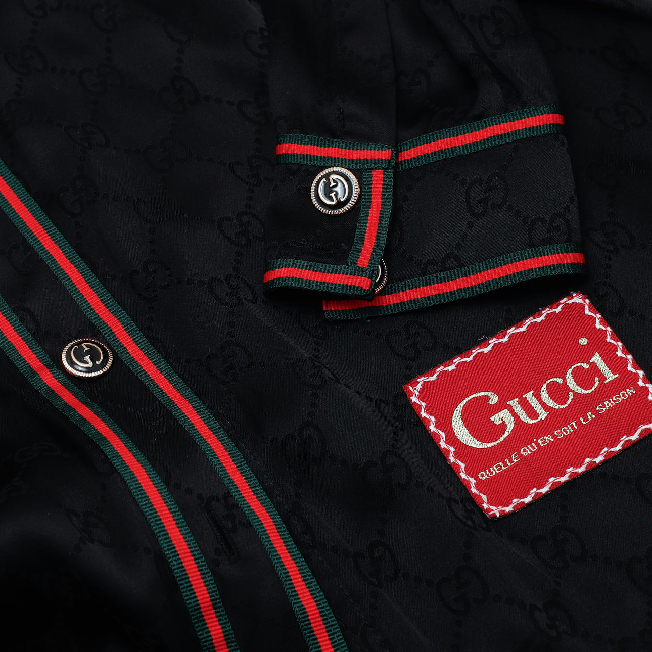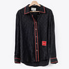Black fabric with monogram pattern, buttons in gold colored metal. Made in Italy, according to label size L. Back length approx. 76 cm, bust width approx. 112 cm, inner sleeve length approx. 46 cm.