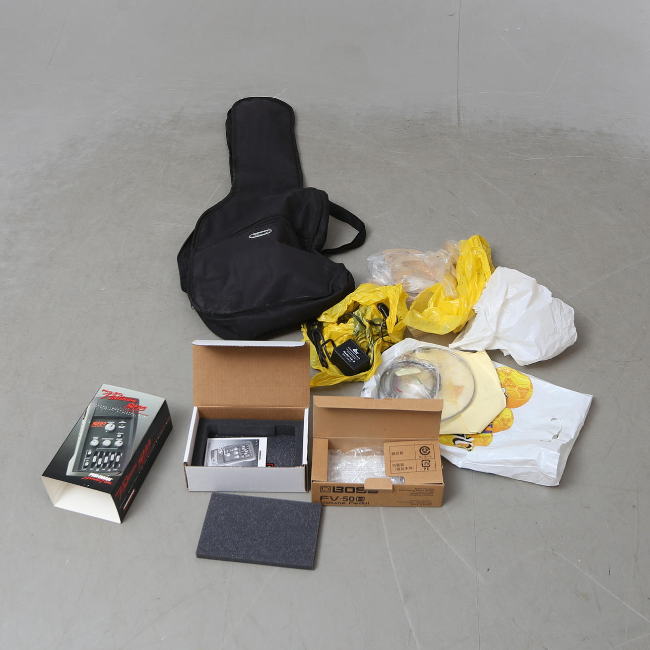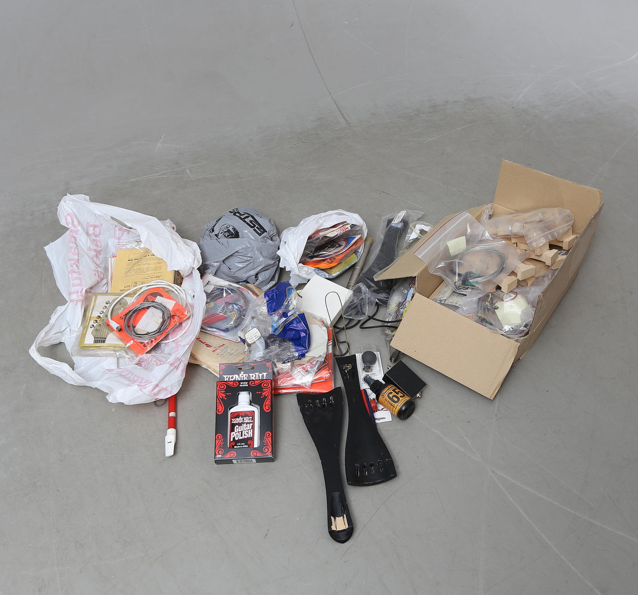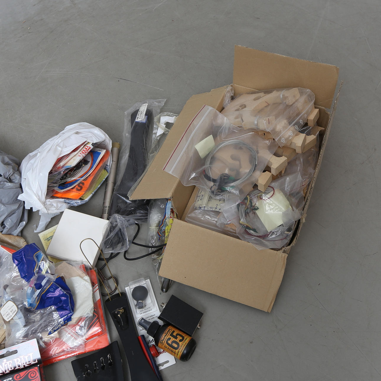About 2 moving boxes. Various cables, parts for instruments, etc.