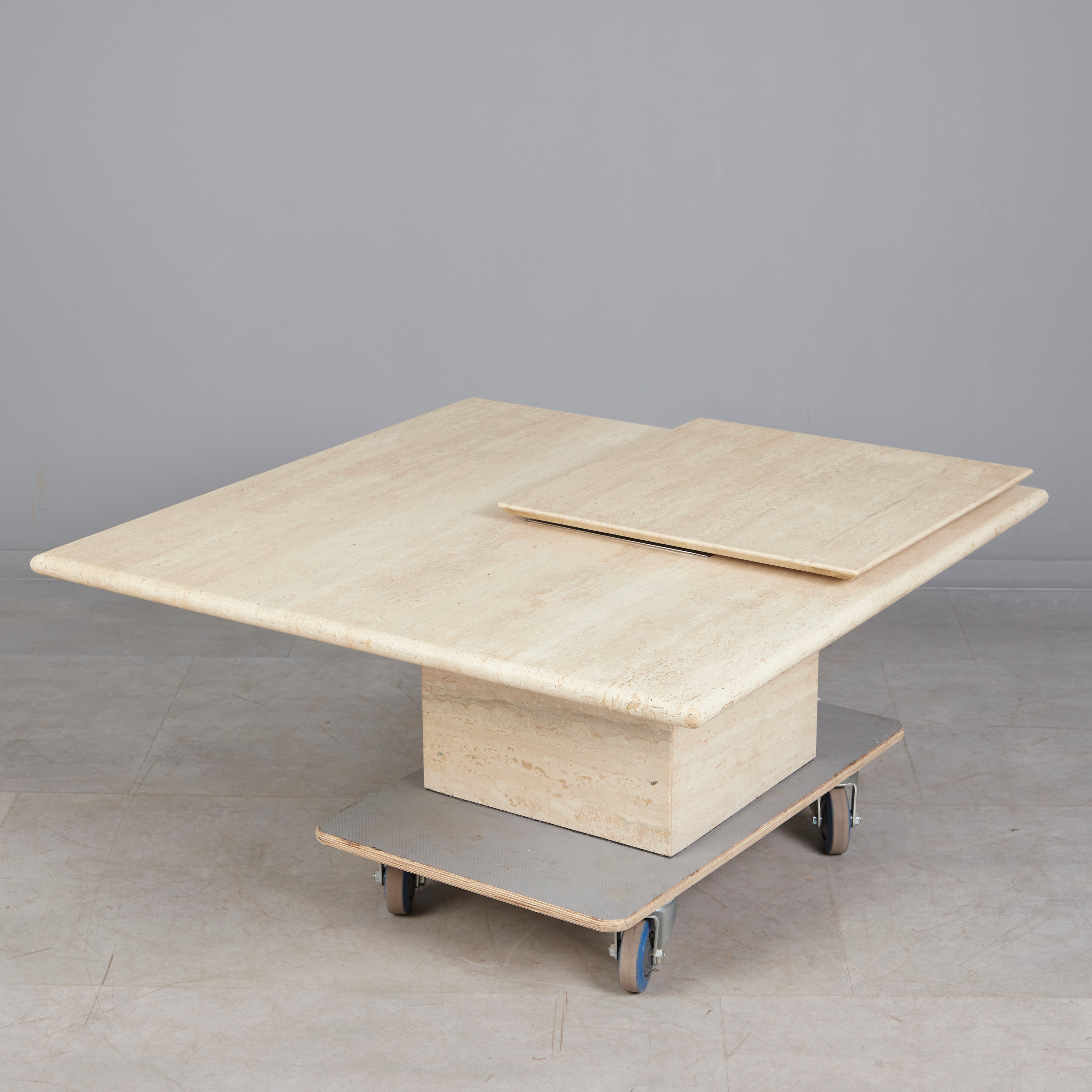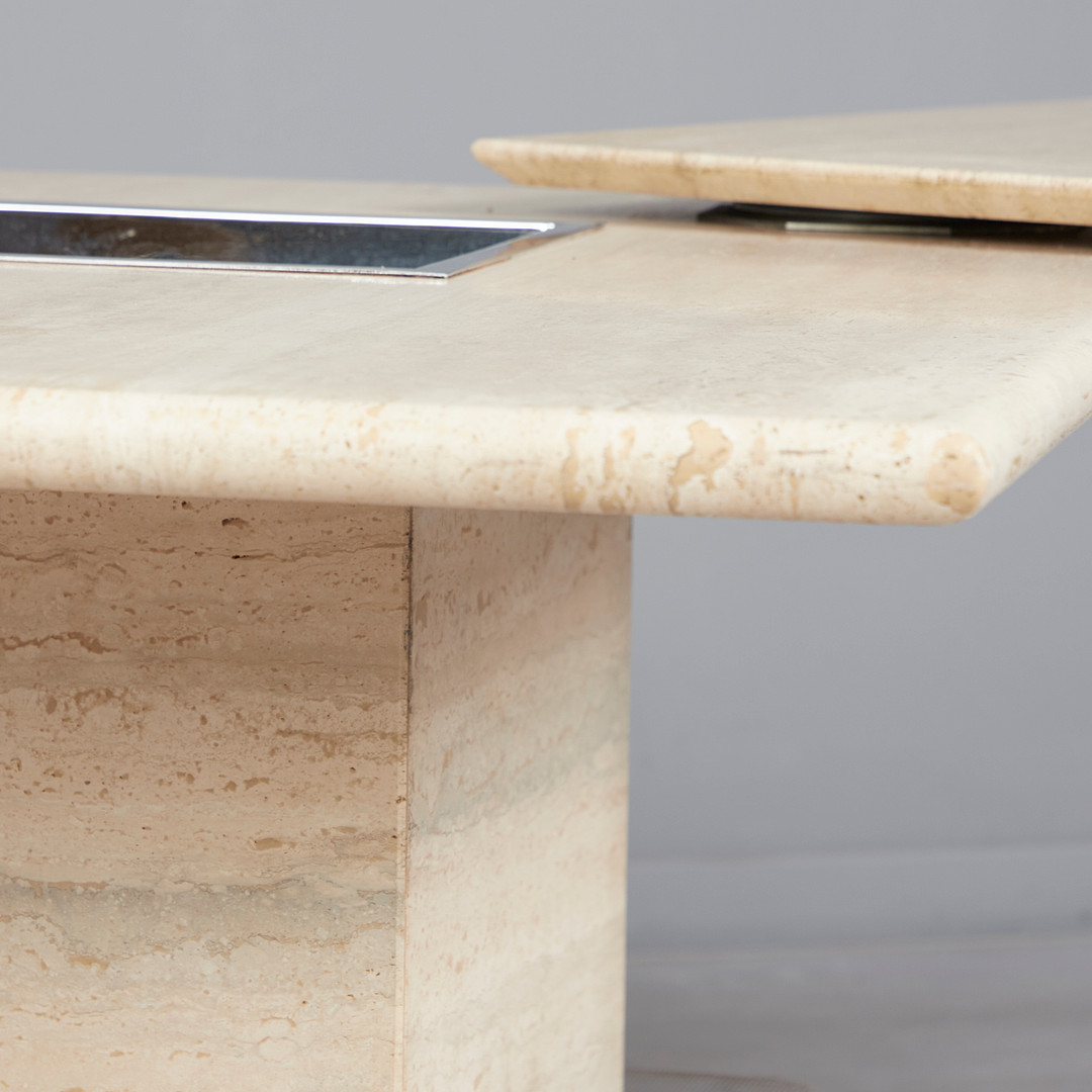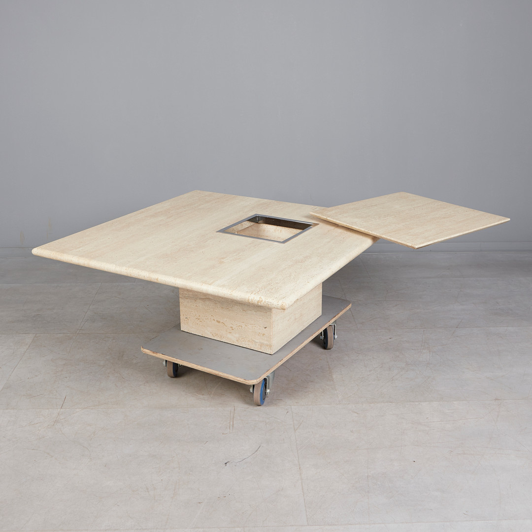 4212454. GIORGIO CATTELAN. for Cattelan Italia, coffee table/table with bar, Sigma Bar model, travertine, Italy, 1970s.