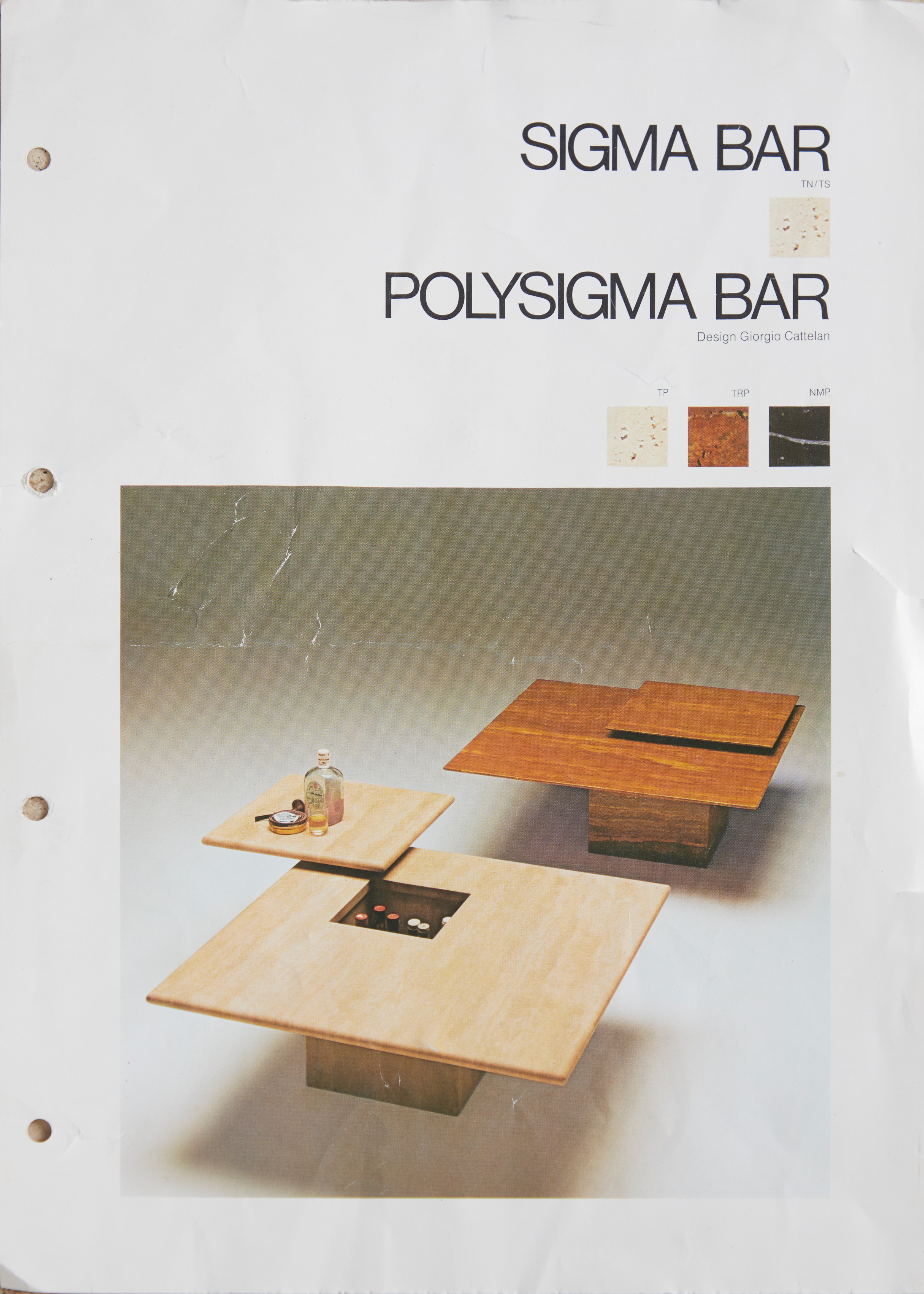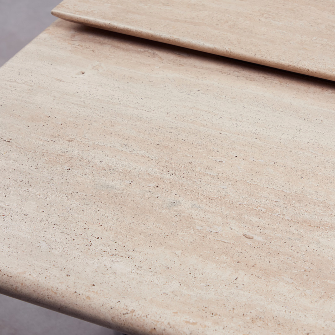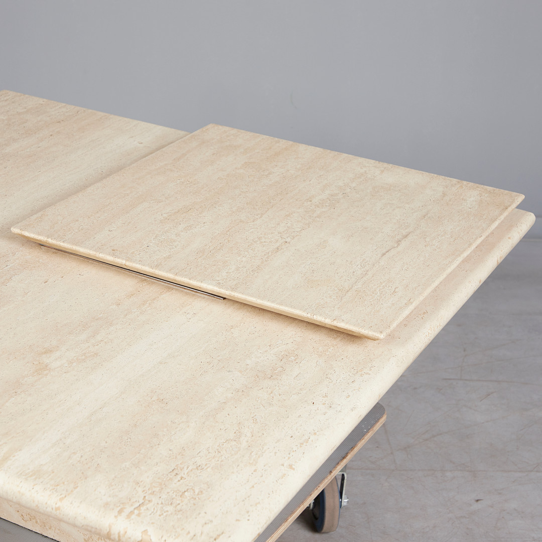 4212454. GIORGIO CATTELAN. for Cattelan Italia, coffee table/table with bar, Sigma Bar model, travertine, Italy, 1970s.