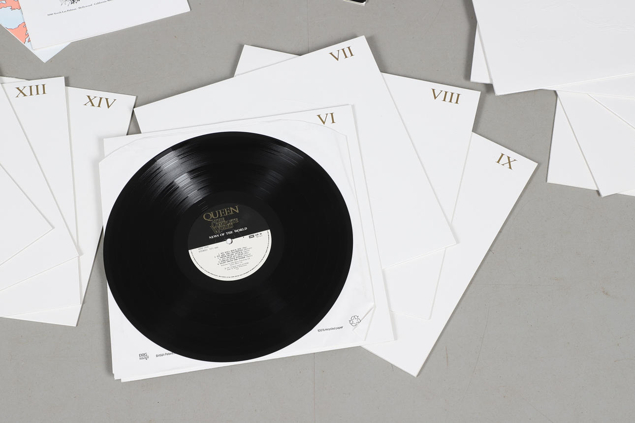 The 14 LP set includes the Complete Works Booklet, Queen Tour Itinerary 1971 to 1985 and Queen Map of the World. Box measures Height 8cm x Width 33cm x Depth 33cm.