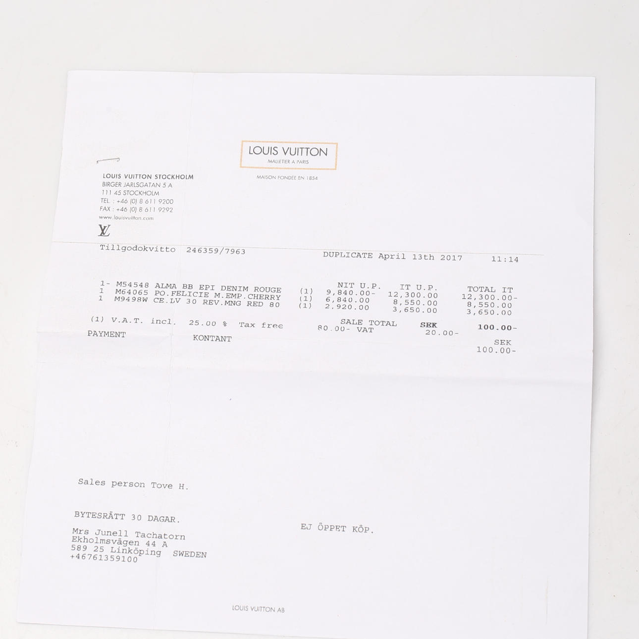 Tagged “Louis Vuitton, Paris, made in France.“