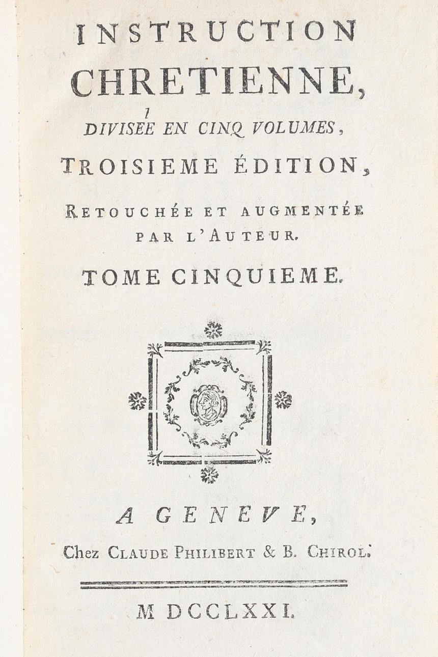 Instruction Chretienne 1771 Historical Ristretto. Height of the back about 16 cm. Exlibris Freehold House Funck.