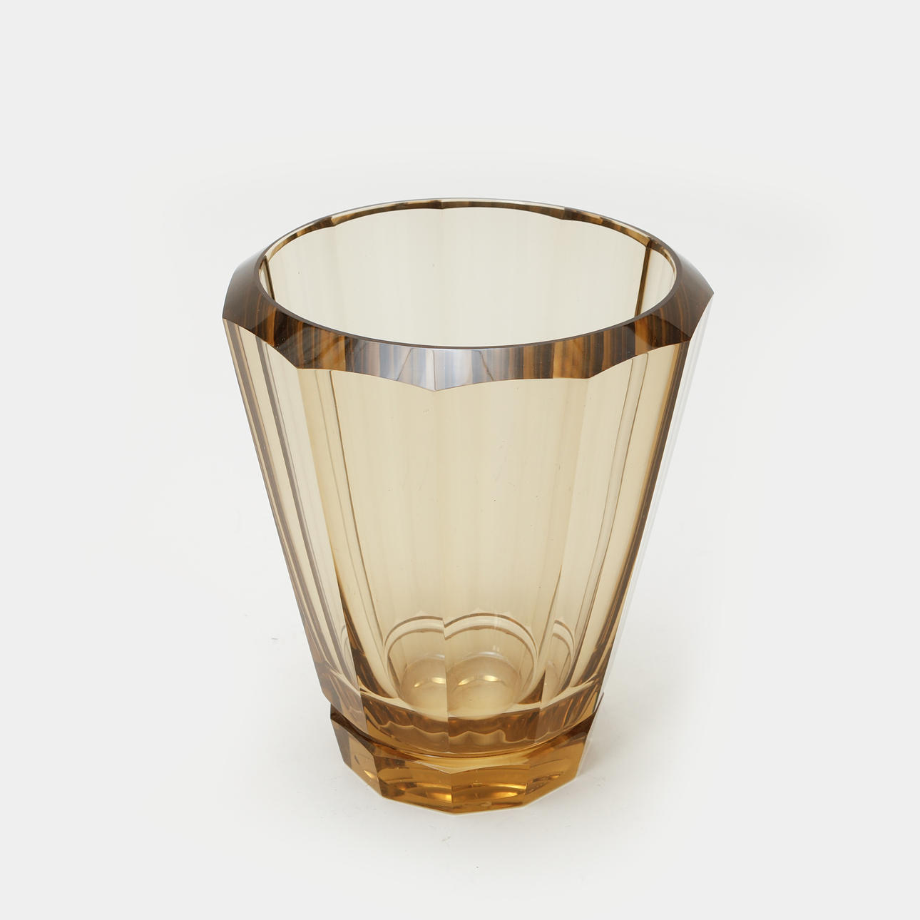 Smoke-colored faceted soda glass, height approx. 22, inner diameter approx. 16 cm. Signed S-cabin, 1936, B 87.