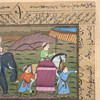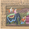 Illuminated manuscript page - Persian, polychrome miniature painting on paper, depicting a procession, inscribed on top and side, sheet size ca. 14 x 19.5 cm.