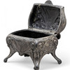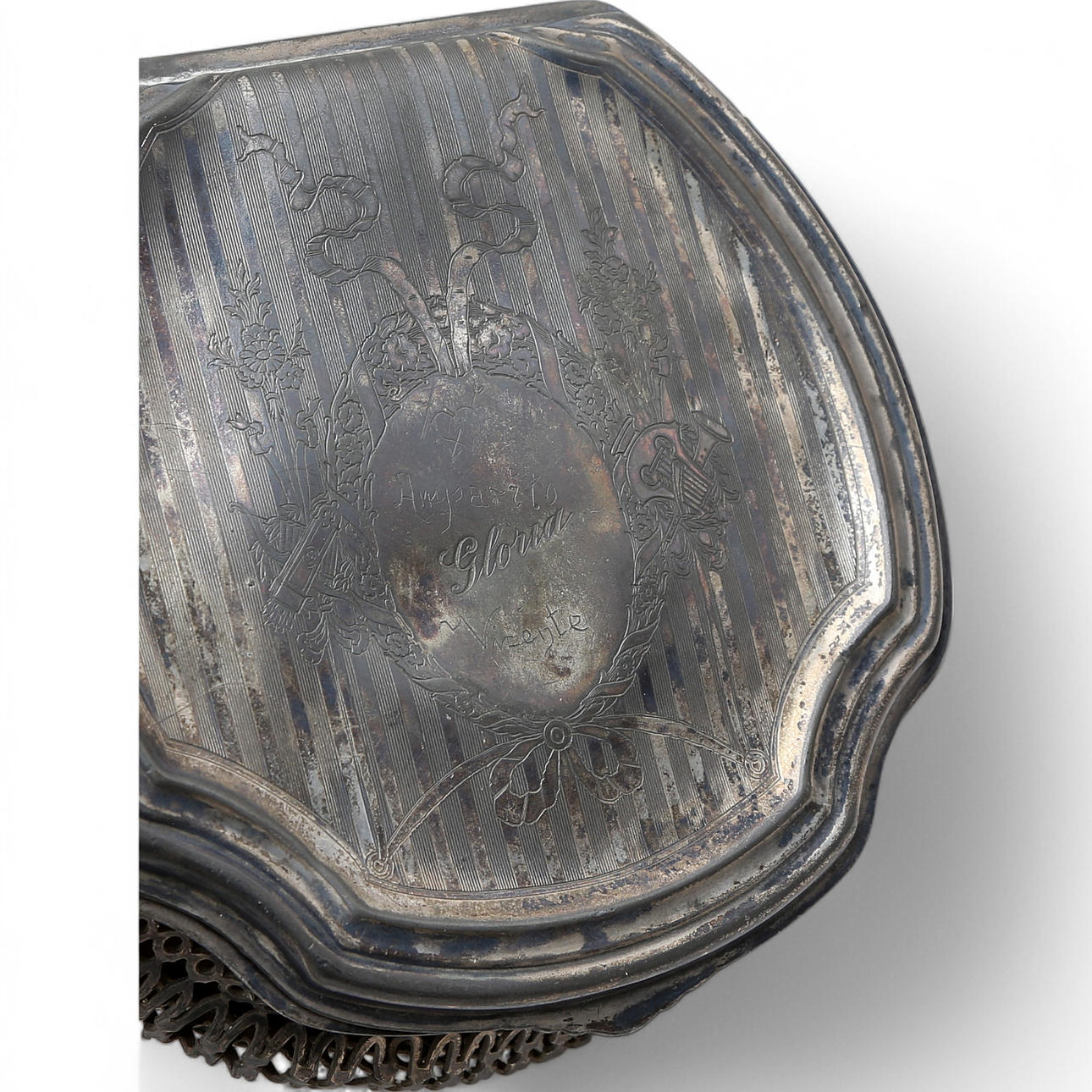Losses on the silvering, signs of use, some dents and manually engraved names on the lid of the largest one. Wear and tear, small breaks and restored foot on the smallest one.
