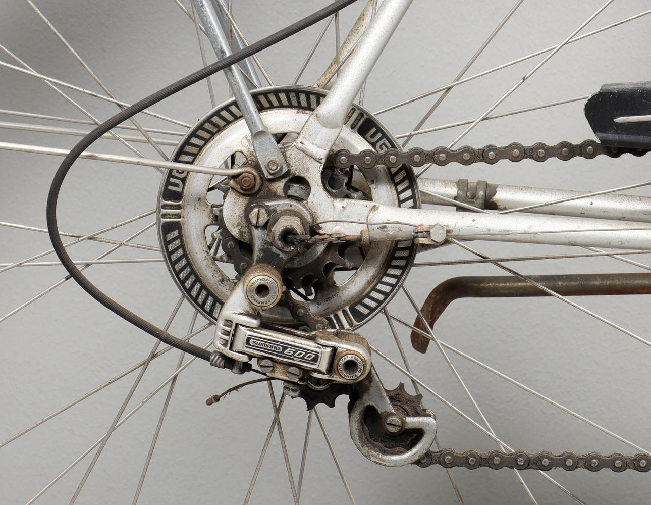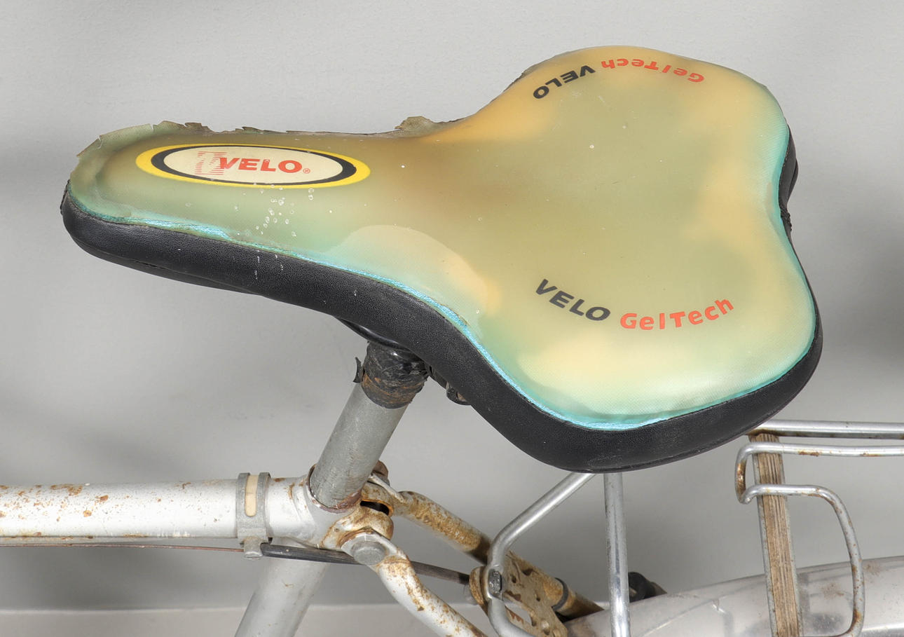 Key missing, wear, corrosion, sluggish gears, saddle with pasted gel cover.